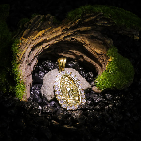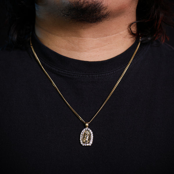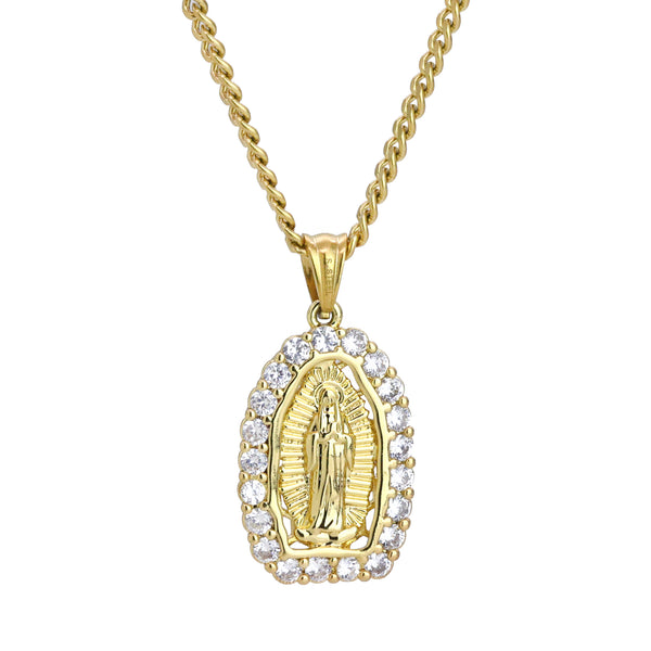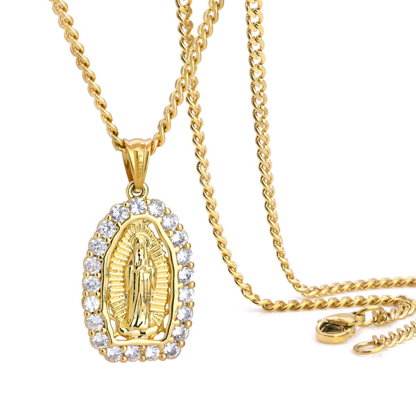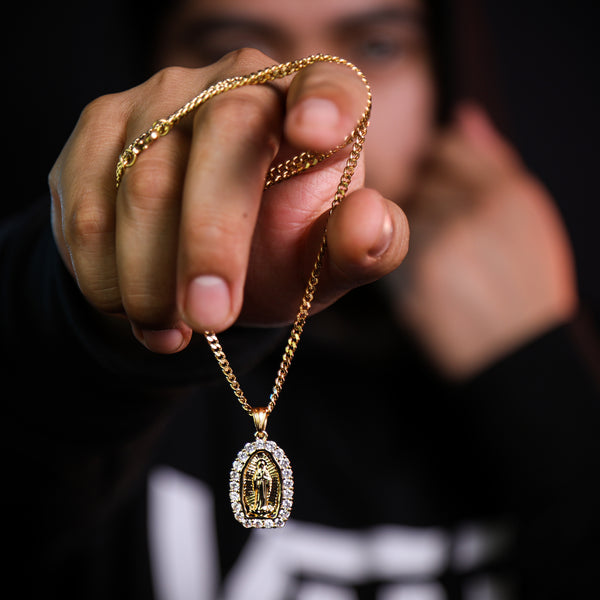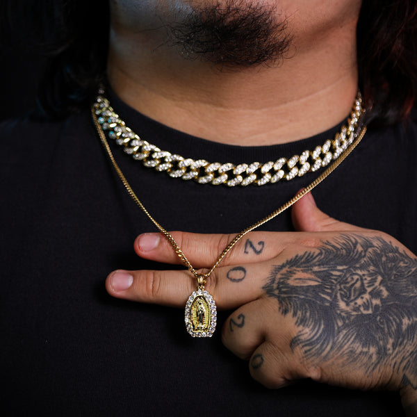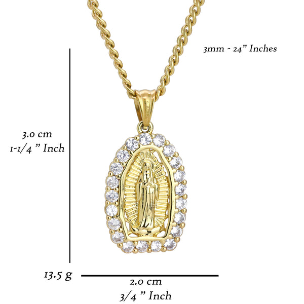 Icy Guadalupe Pendant 24" Cuban Chain Hip Hop Style 18k Gold Stainless Steel