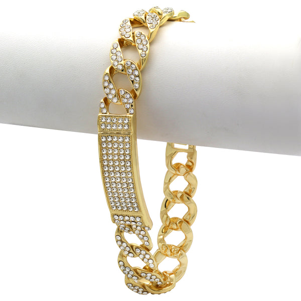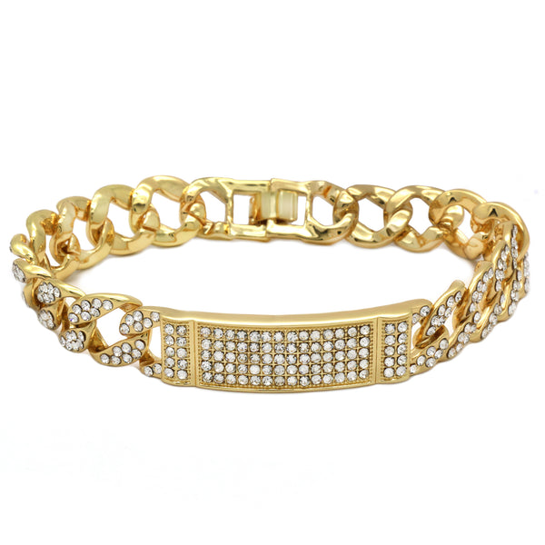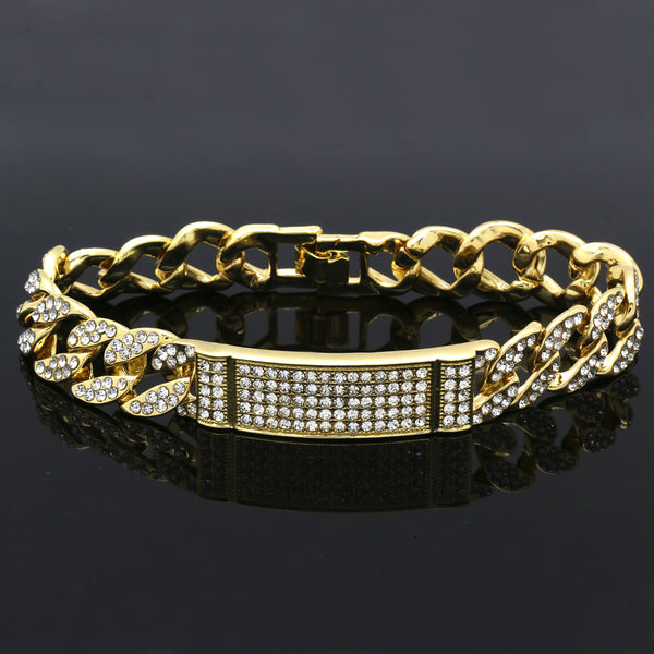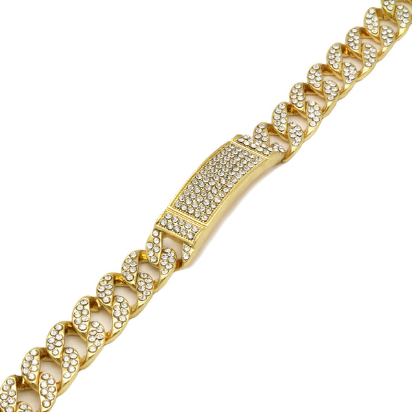 10 mm x 8.5"Elegant Cuban Real Gold Filled FULLY Iced Out Bracelet. Tarnishing Free "Life Time Guarantee" on Air Condition. High-impact 14k Gold Plating over Brass. Lustrous Cz Finish in front...