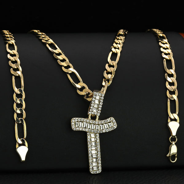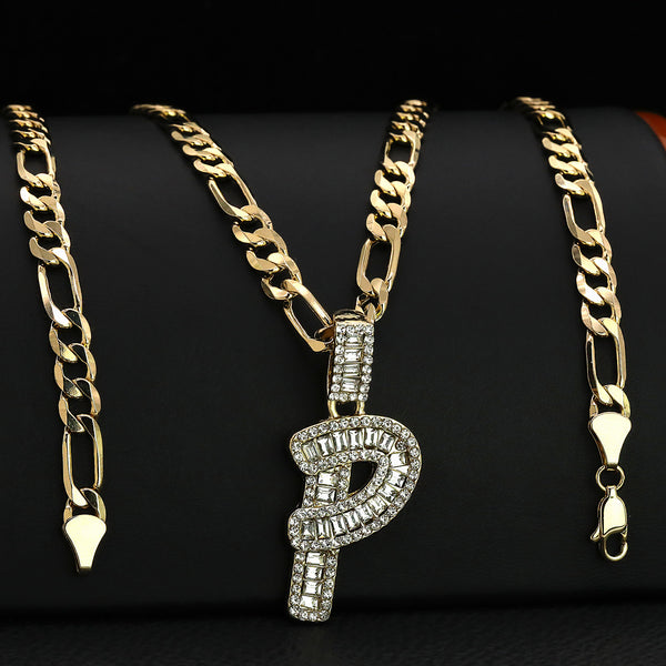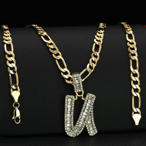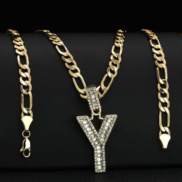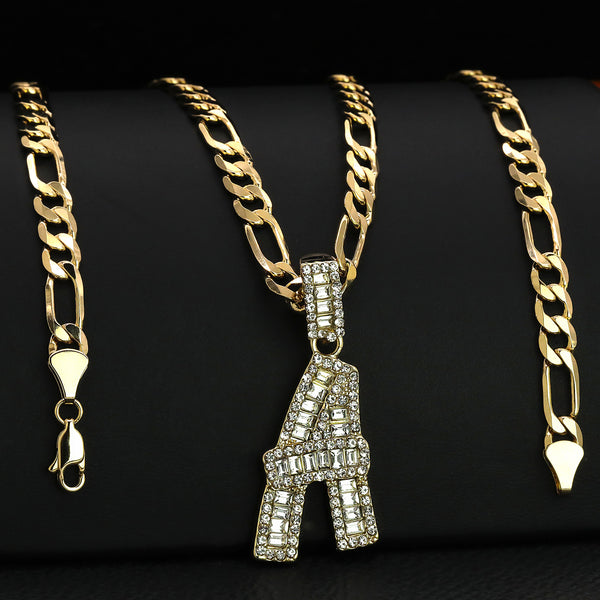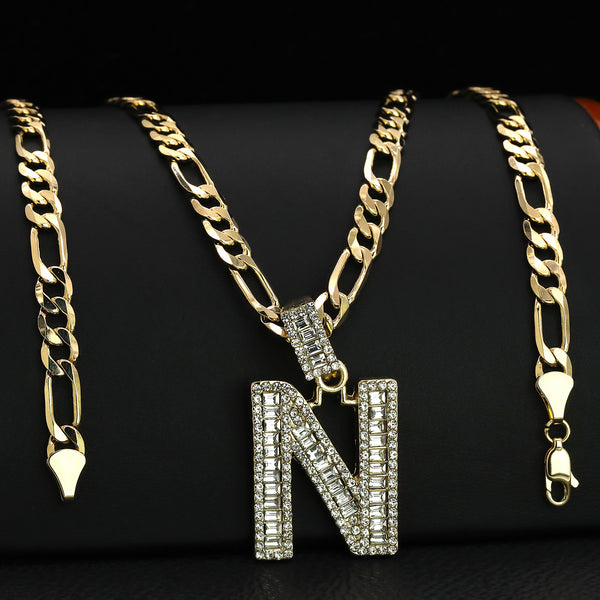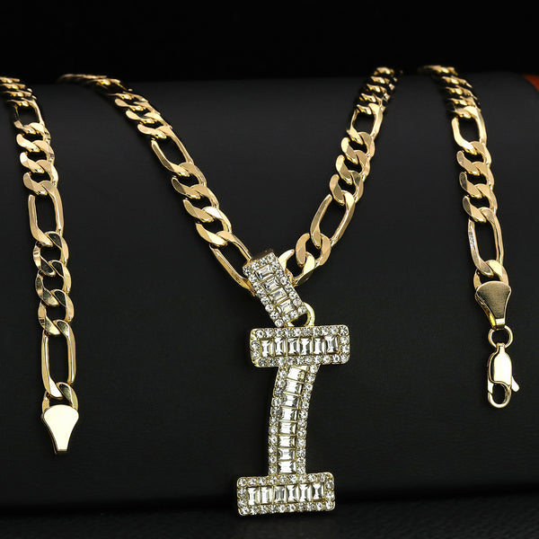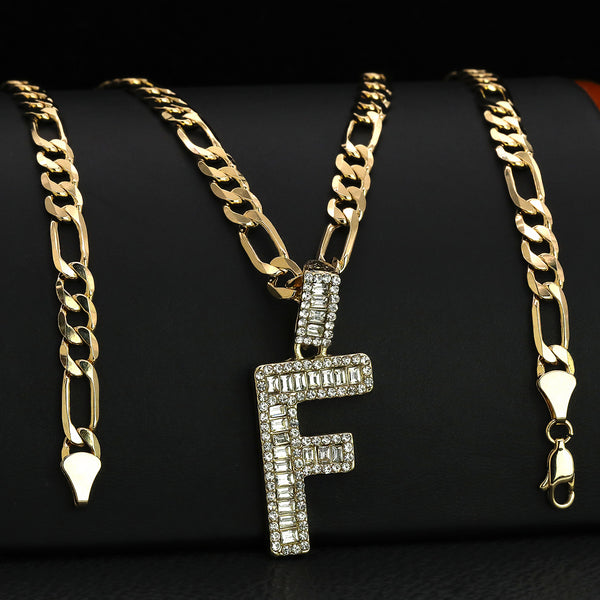 Initial Alphabet Letter Lab Baguette Cz Diamond Cut Pendant 4mm 20" FIGARO CHAIN Hip Hop Necklace