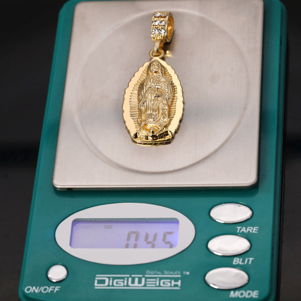 Hip Hop Bling 14K Gold Filled Necklace Pendant 14K Gold Filled Iced Out Jesus Anchor & Catholic Oval Wavy Mary Guadalupe Pendants with 4mm 24"/30" Rope Chain Gold Filled Over...