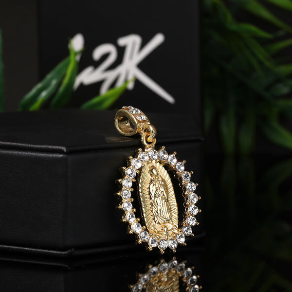 Hip Hop Bling 14K Gold Filled Necklace Pendant 14K Gold Filled Iced Out Jesus Anchor & Catholic Round Spike Guadalupe Pendants with 4mm 24"/30" Cuban Chain Gold Filled Over Brass Makes...