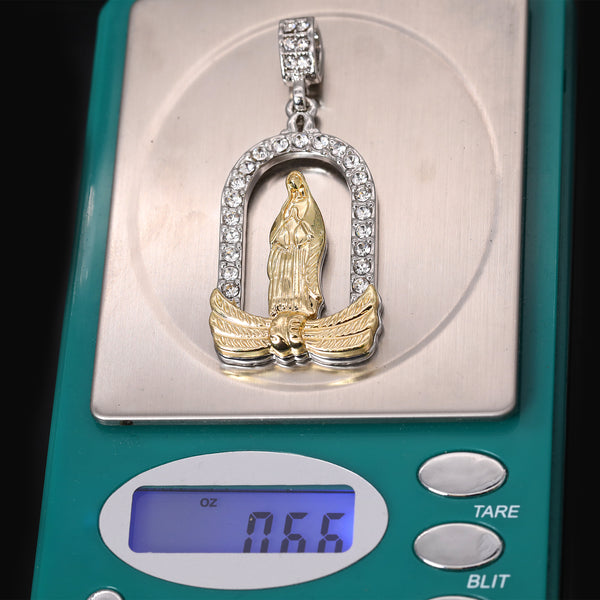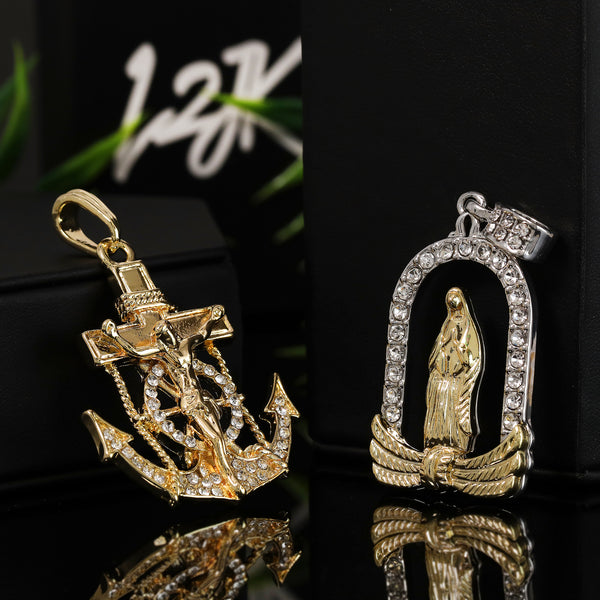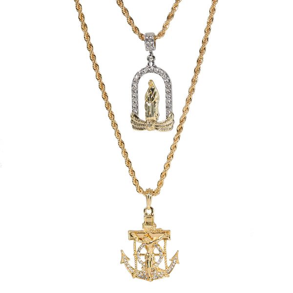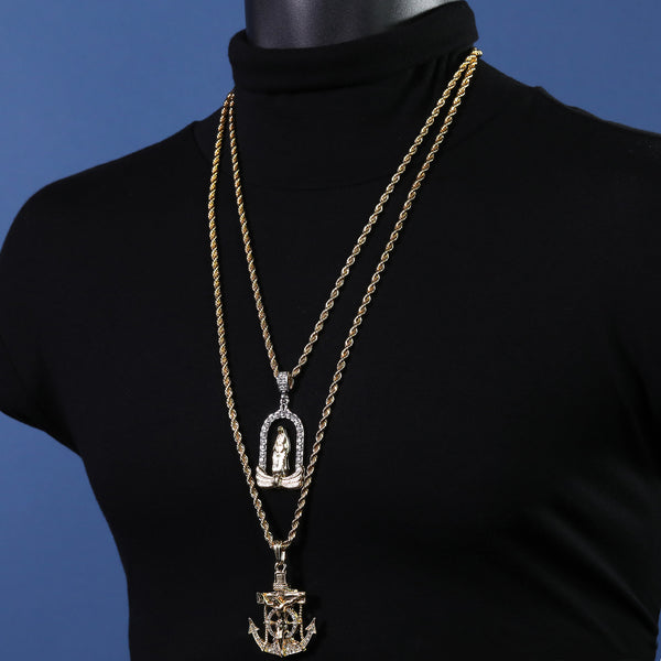 Hip Hop Bling 14K Gold Filled Necklace Pendant 14K Gold Filled Iced Out Jesus Anchor & Catholic Chapel Guadalupe Pendants with 4mm 24"/30" Rope Chain Gold Filled Over Brass Makes...
