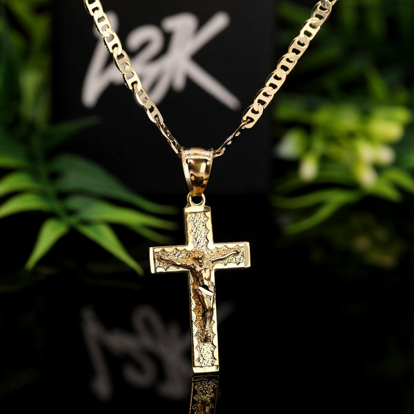 Jesus Cross Nugget Pendant 01 Mariner Chain 20" Gold Plated