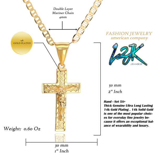 14K Gold Filled Jesus Cross Pendant Gold Filled Over Brass Makes this Necklace Look & Feel as a Real Gold Piece Elegant Pendant Diamond Cut Edges Color: Gold Chain -...