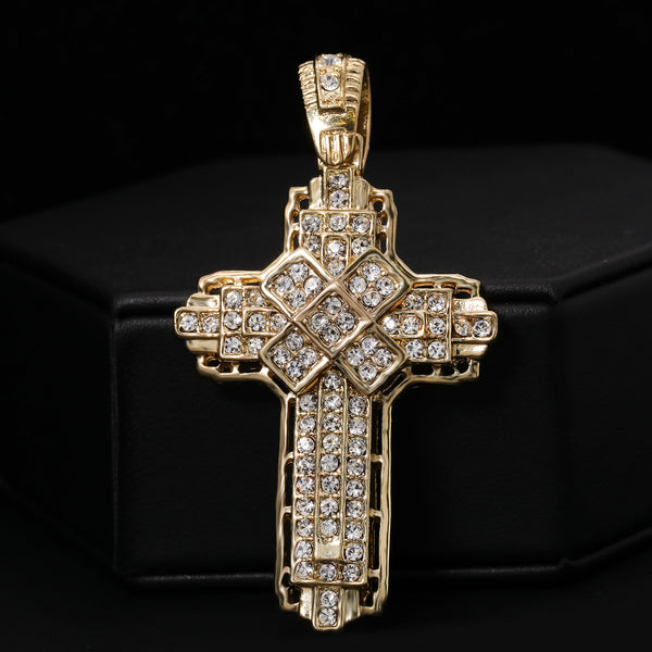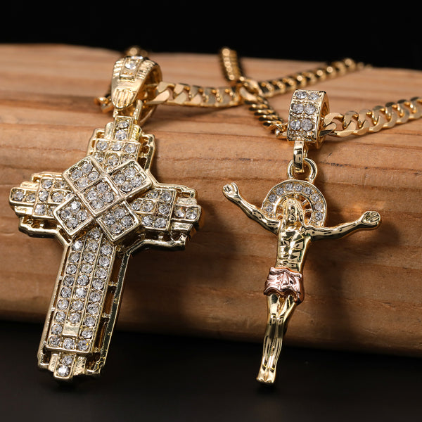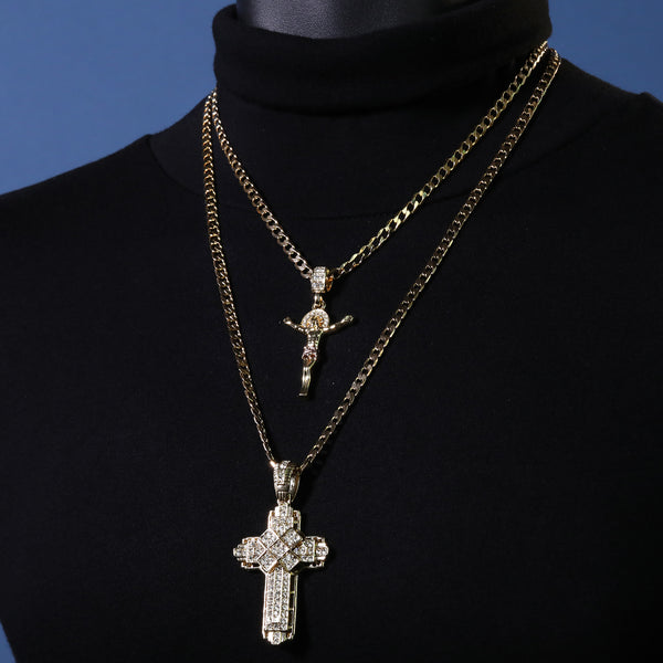 Jesus Crucifix & Hollow X Cross Pendant 20, 24" Cubic-Zirconia Gold Plated