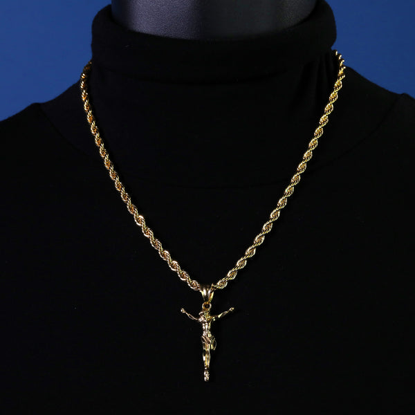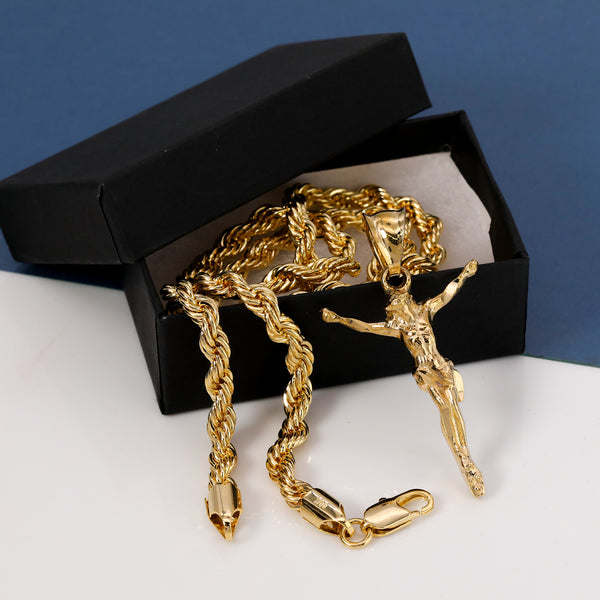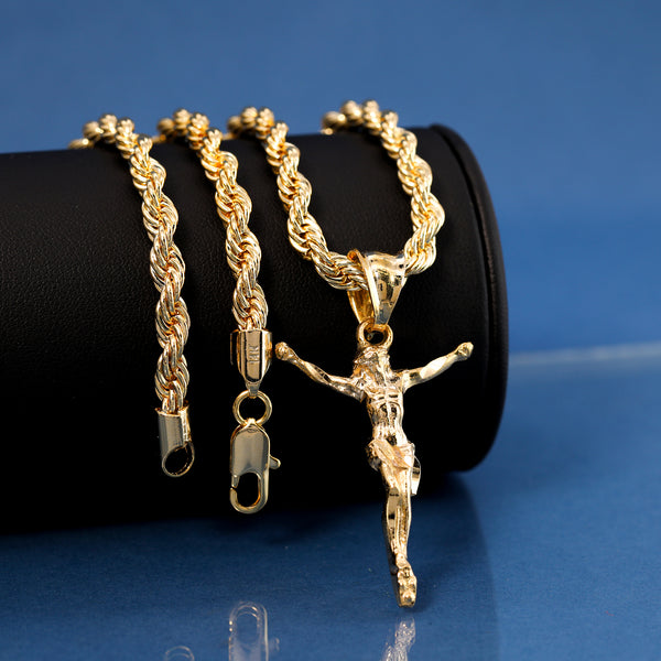 Jesus Crucifix Pendant Rope Chain 14k Gold Plated