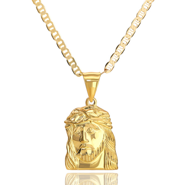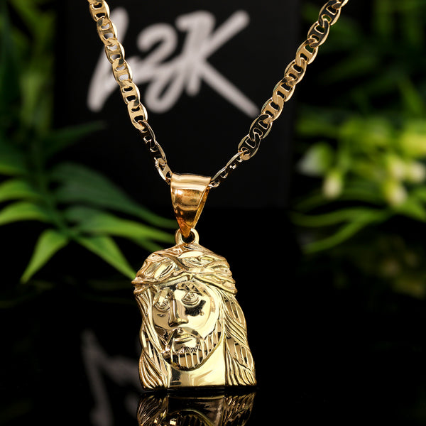 Jesus Face Pendant 01 Mariner Chain 20" Gold Plated