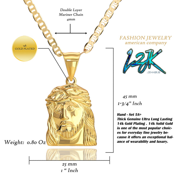 14K Gold Filled Jesus Face Pendant Gold Filled Over Brass Makes this Necklace Look & Feel as a Real Gold Piece Elegant Pendant Diamond Cut Edges Color: Gold Chain -...
