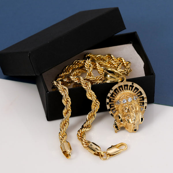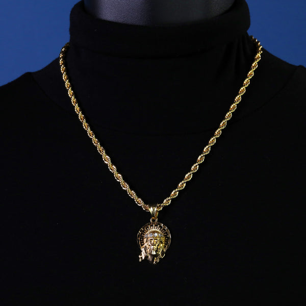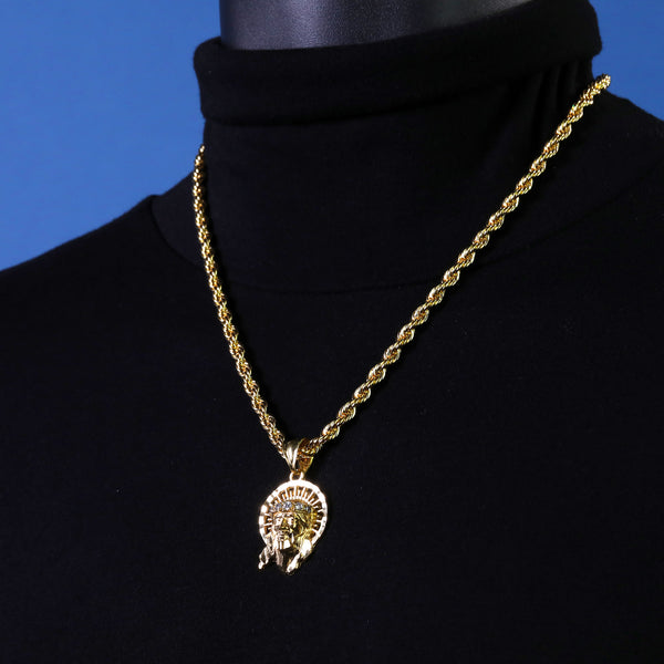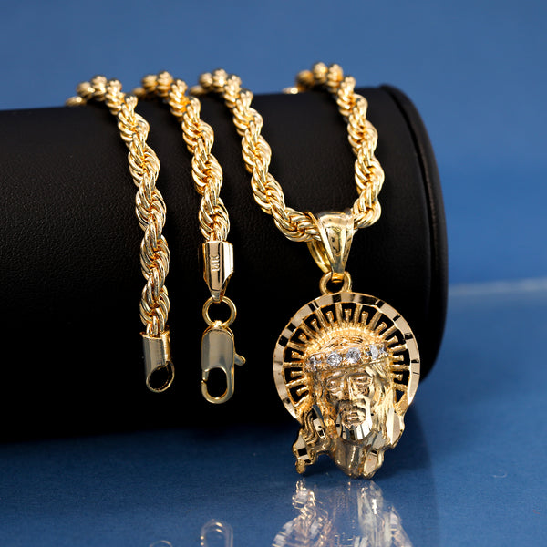 Jesus Halo Pendant Rope Chain 14k Gold Plated