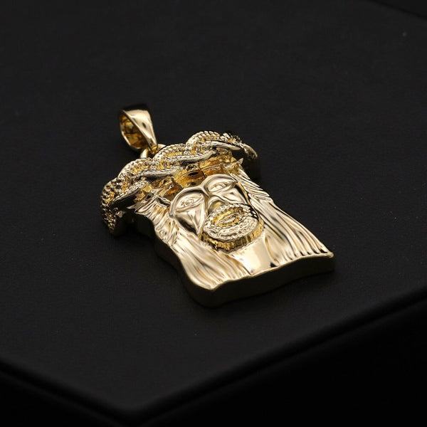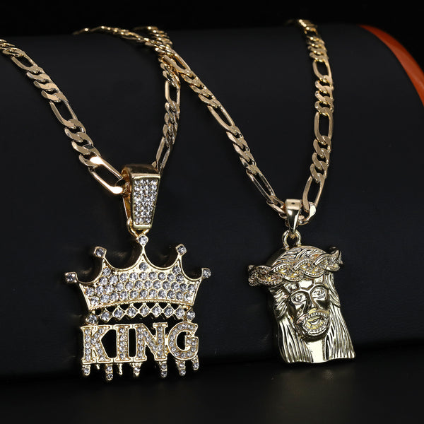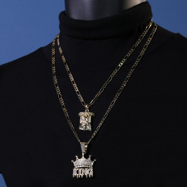 Jesus PlainFace & King Drip Pendant 20, 24" Cubic-Zirconia Gold Plated