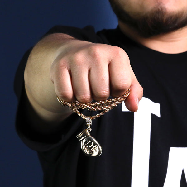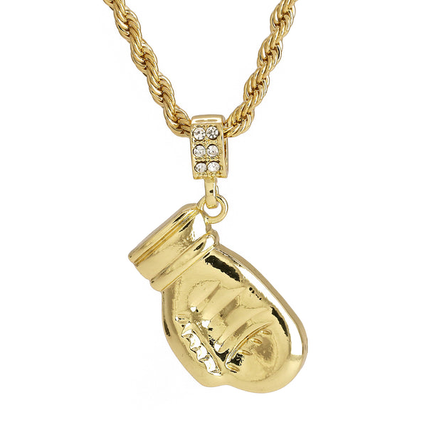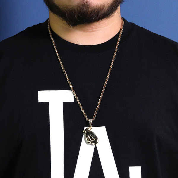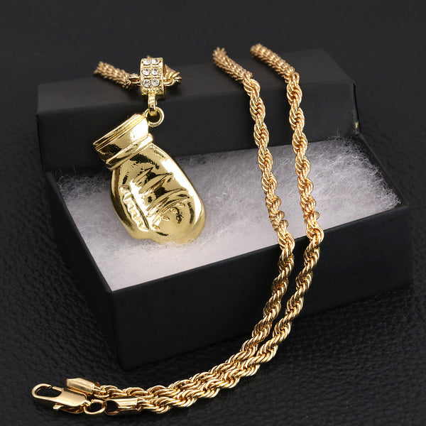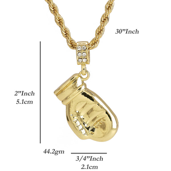 Karate Glove Mitt Kid Kung Fu Pendant 30" Rope Chain Hip Hop Style 18k Gold Plated