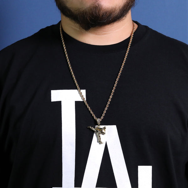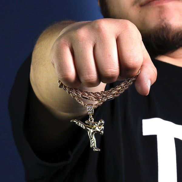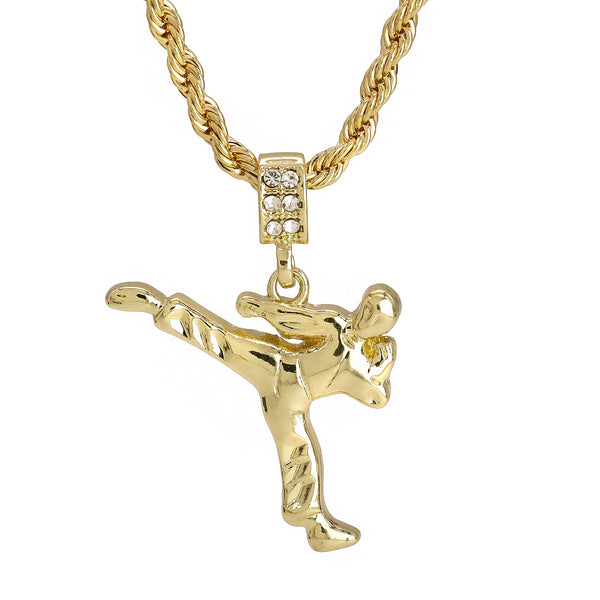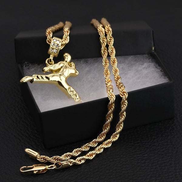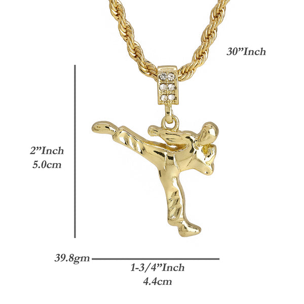 Karate Kid Kung Fu Pendant 30" Rope Chain Hip Hop Style 18k Gold Plated