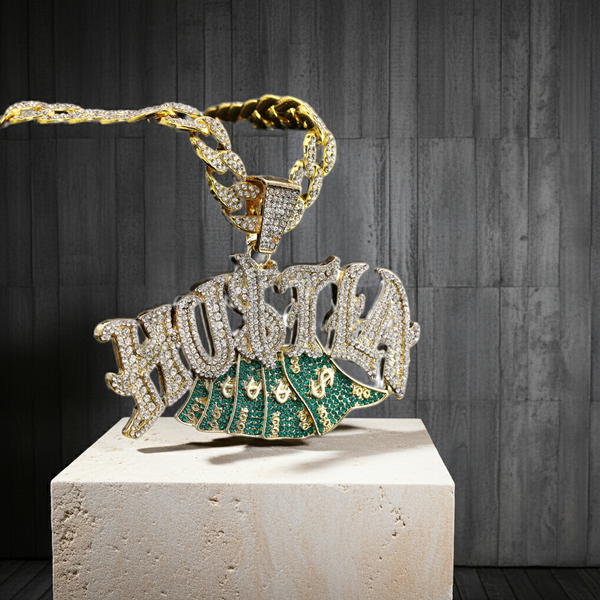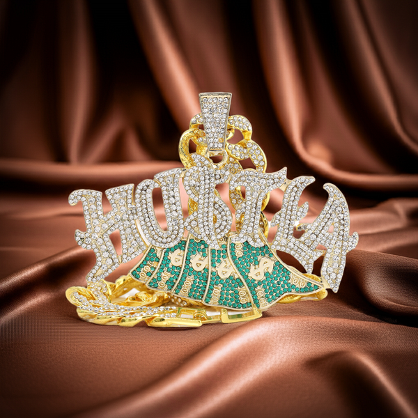 Large Jumbo Huge HUSTLA Pendant & Chain Set Make a bold statement with the Large Jumbo Huge HUSTLA pendant and chain set. Crafted for those who hustle hard and shine...