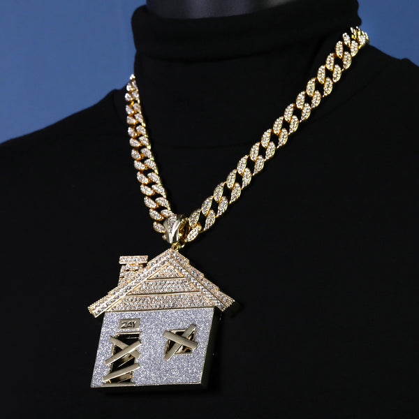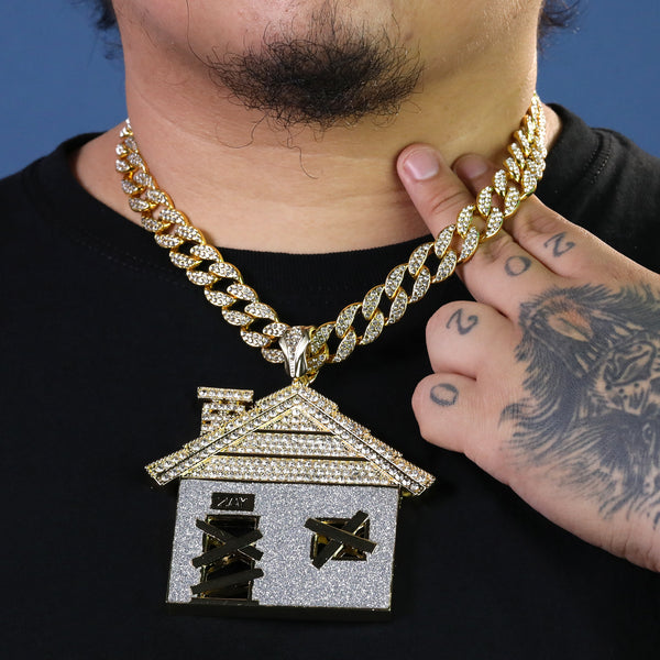 Large Jumbo Huge Stardust Bando House 14k Gold Plated 20" Cuban Chain Necklac