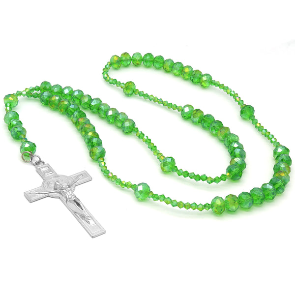 Light Green Crystal Line Rosary With Cross Pendant