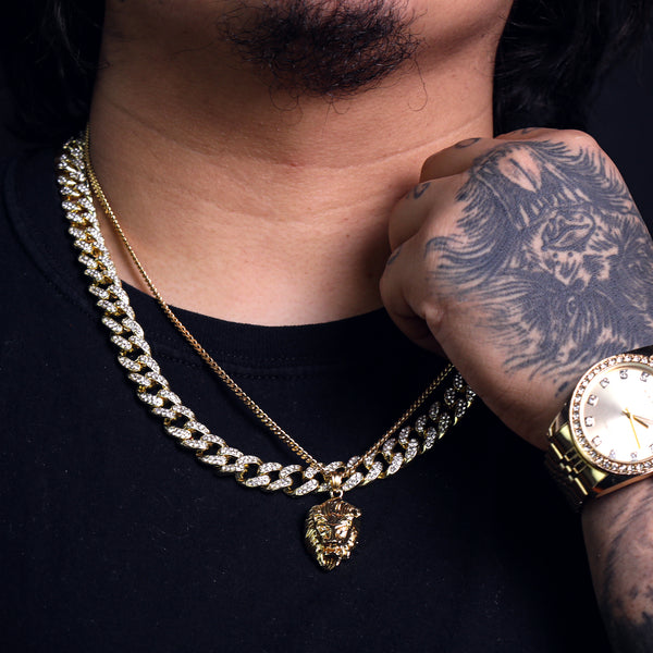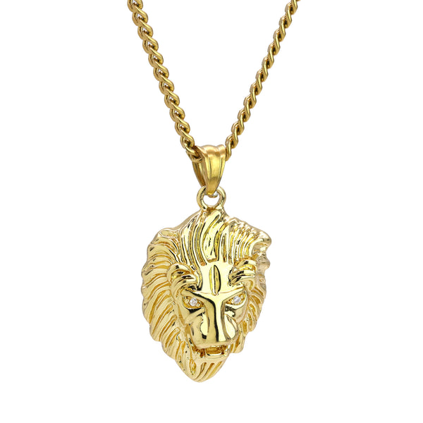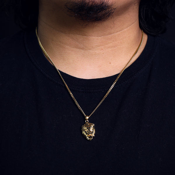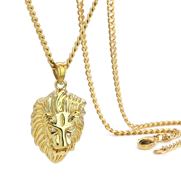 Lion Head Pendant 24" Cuban Chain Hip Hop Style 18k Gold Stainless Steel