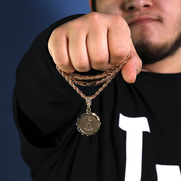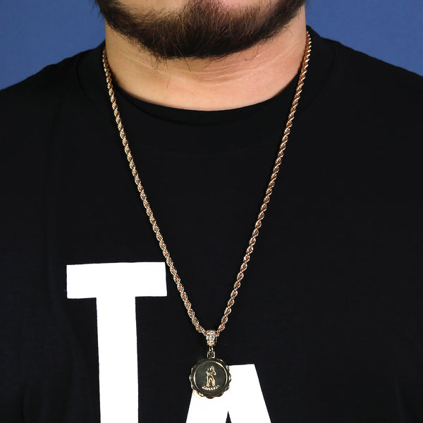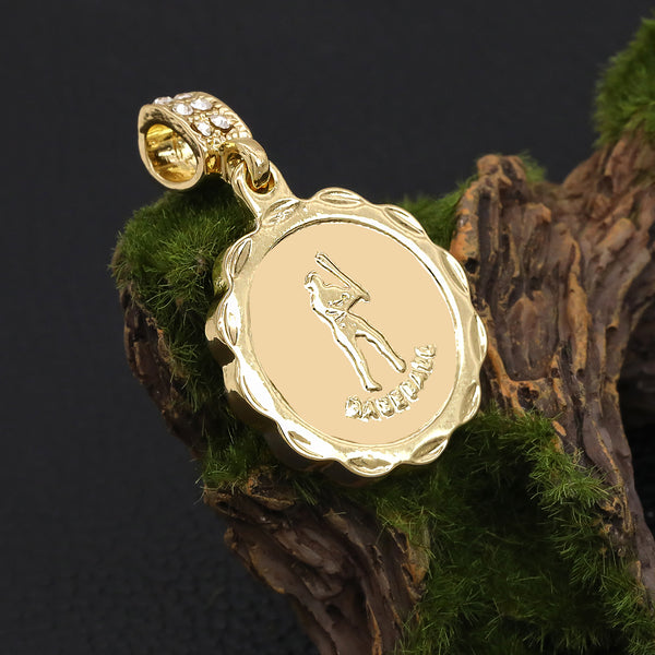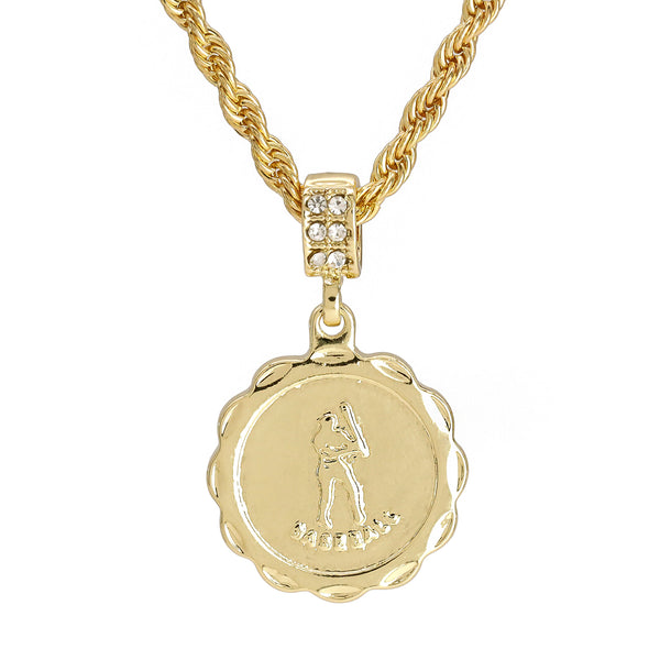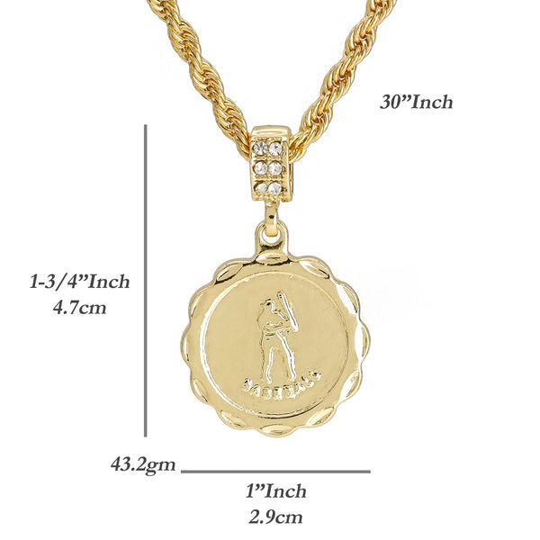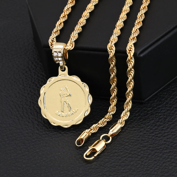 M.V.P. Baseball Medallion Pendant 30" Rope Chain Hip Hop Style 18k Gold Plated