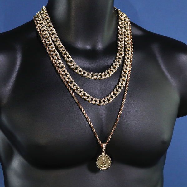 Chain Size: 4mm/30" Pendant Size: Weight: 43.2g Grams Measurements: 4.7cm x 2.9cm This Pendant hanging from a 4mm 30" Rope chain . Each and every stone on this pendant is prong set, same as...