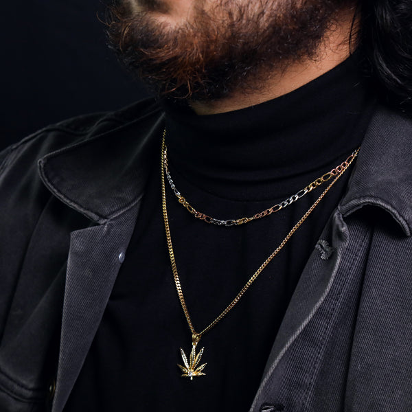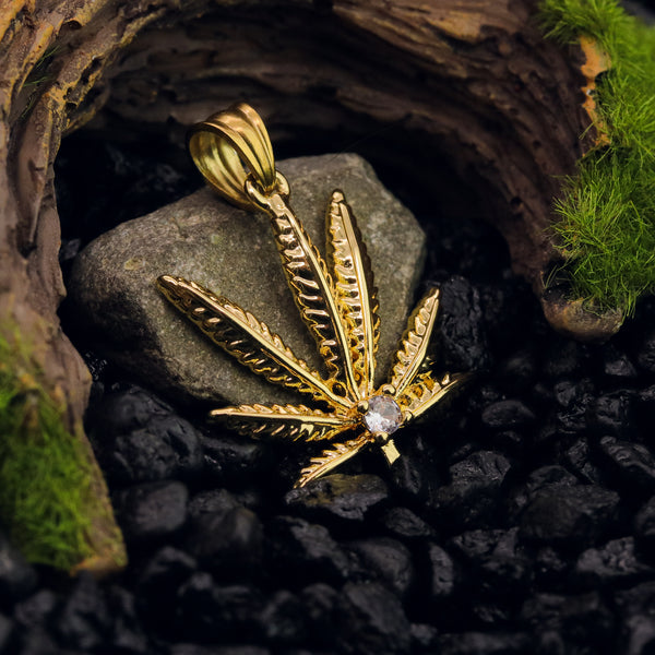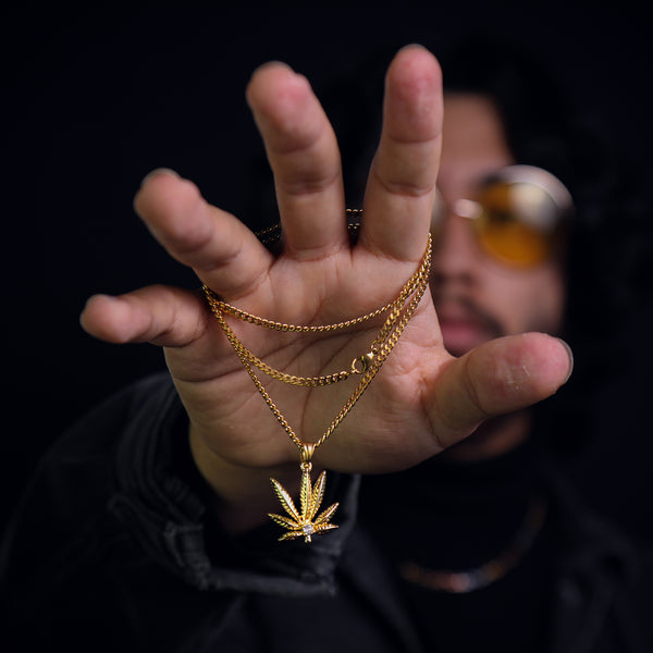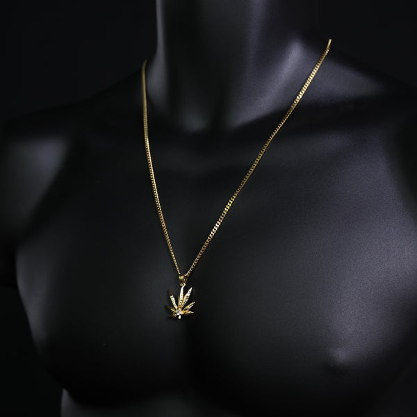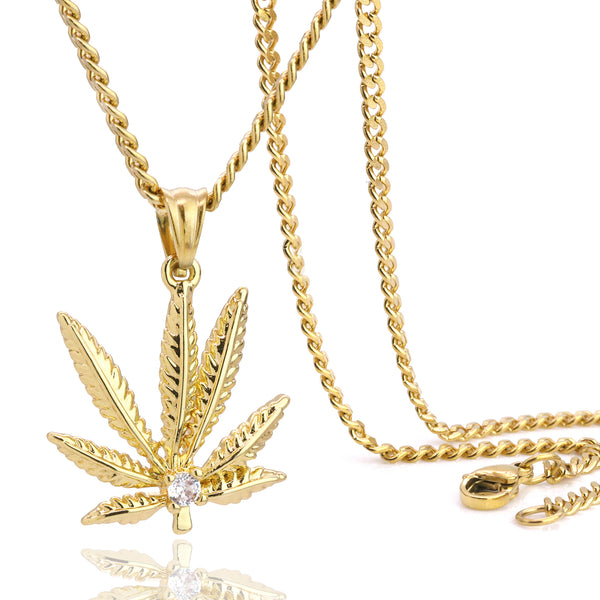 Marijuana Leaf Pendant 24" Cuban Chain Hip Hop Style 18k Gold Stainless Steel