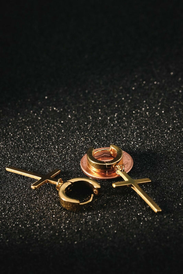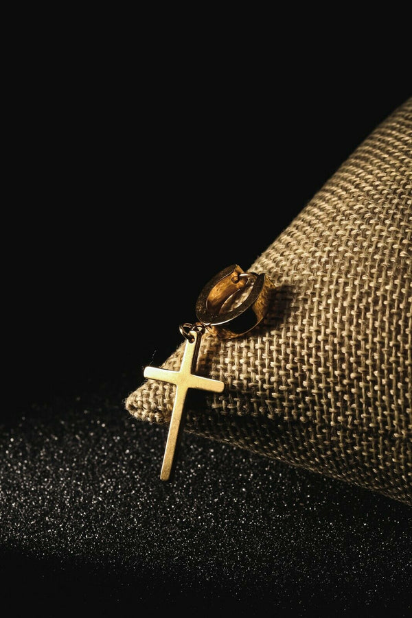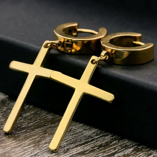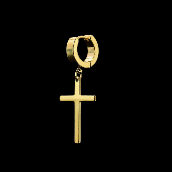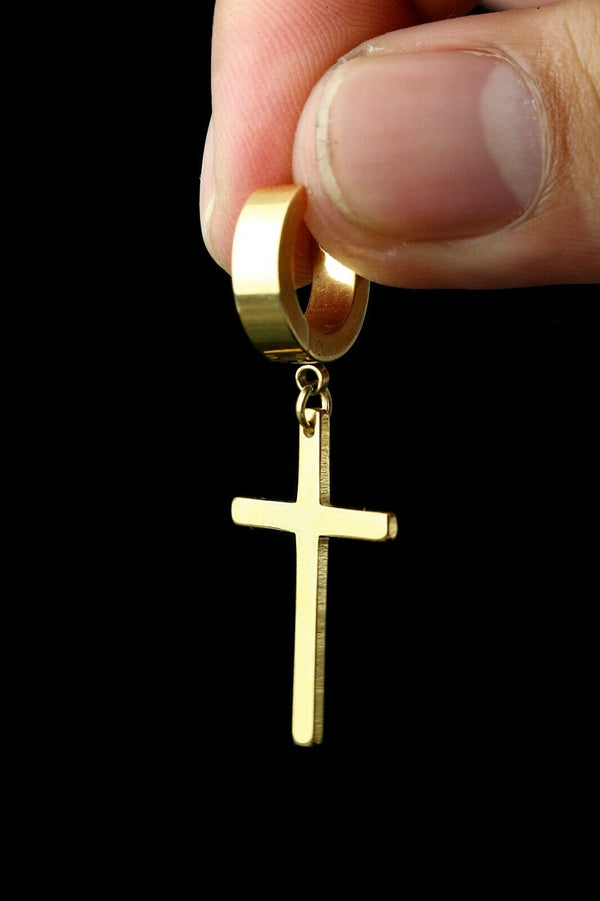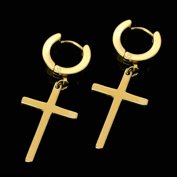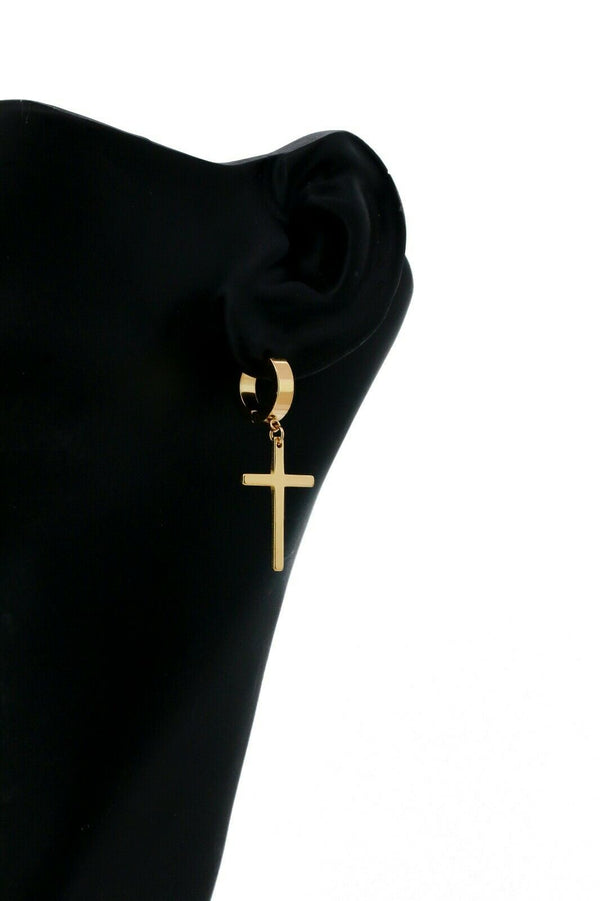 Medium Cross Dangle 18k Gold Stainless Steel Plain Earring