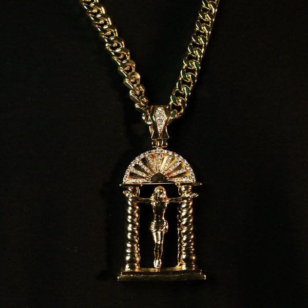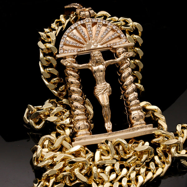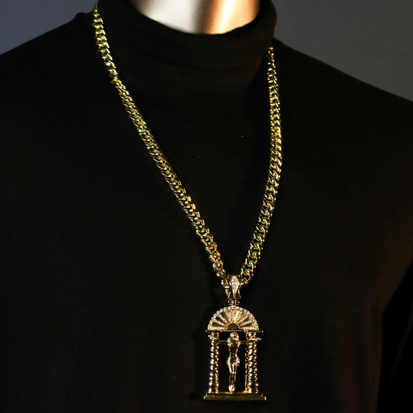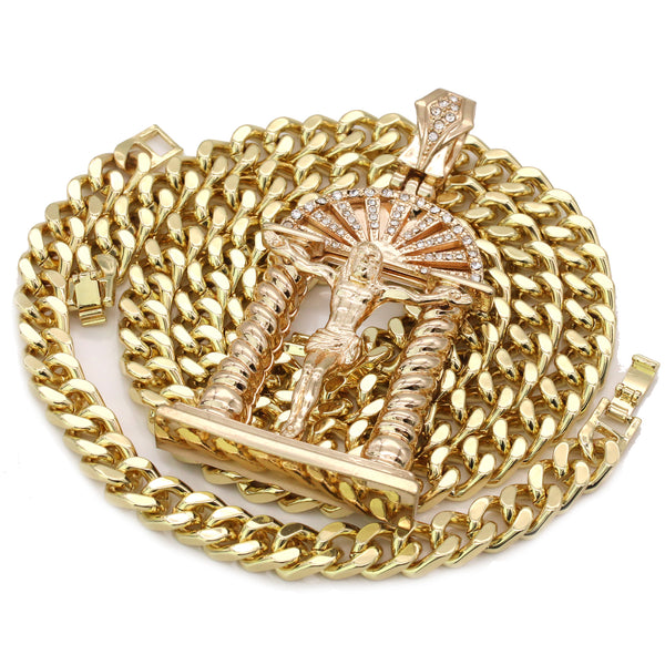 Men's Gold Plated Hip-Hop XL Cz Jesus Chapel Cuban Chain 10mm 30 & Bracelet 3pc Set