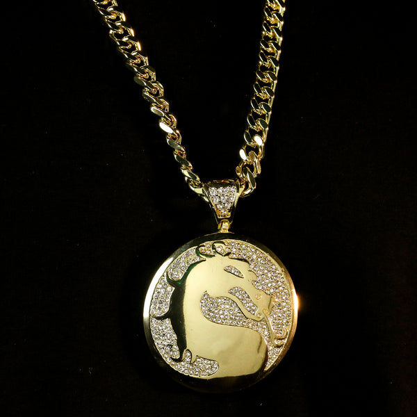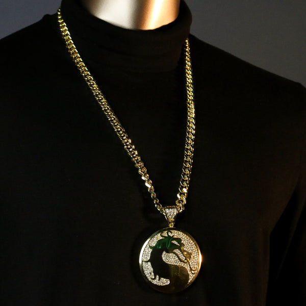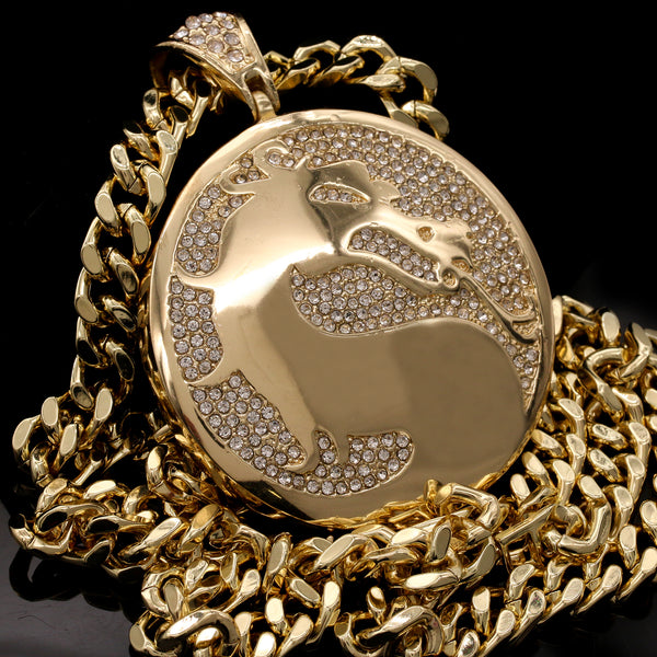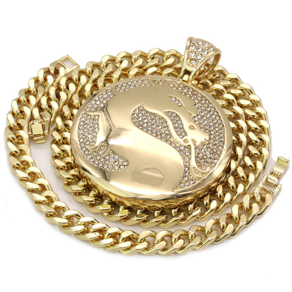 Men's Gold Plated Hip-Hop XL Cz Medallion Dragon Cuban 10mm 30 & Bracelet 3pc Set