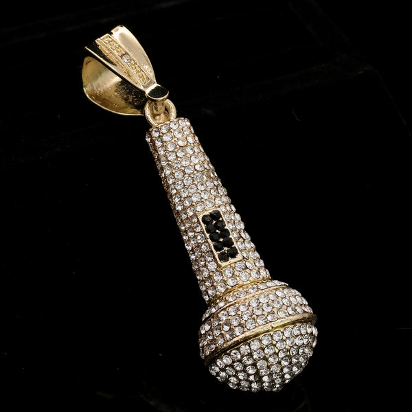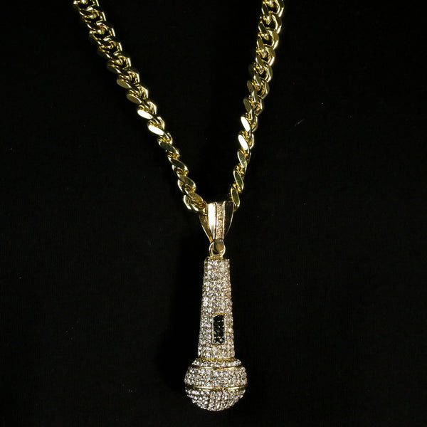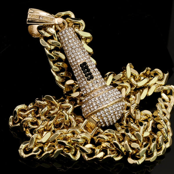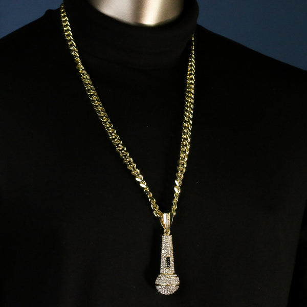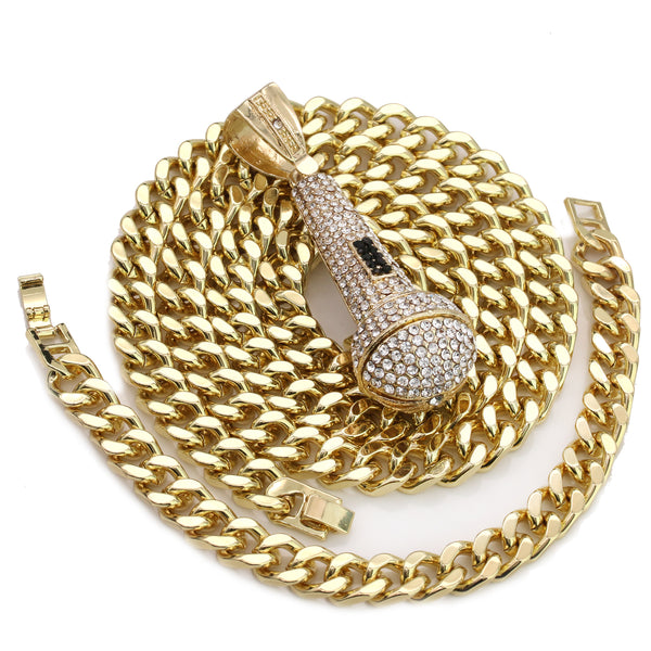 Men's Gold Plated Hip-Hop XL Fully Cz Microphone Cuban 10mm 30 & Bracelet 3pc Set