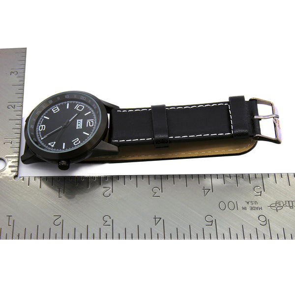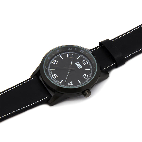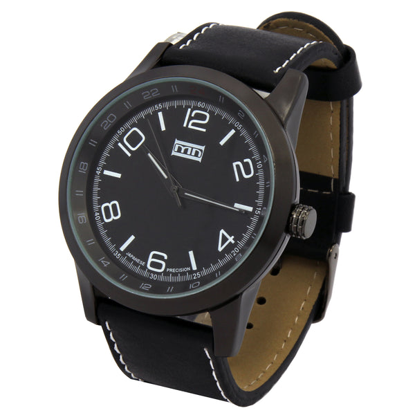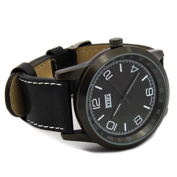 MN Black Leather Band Watch