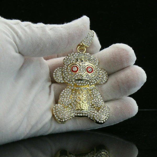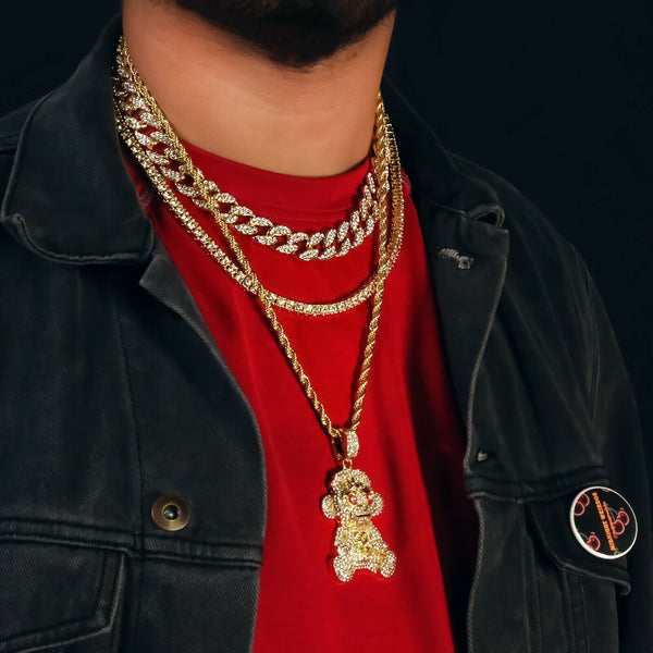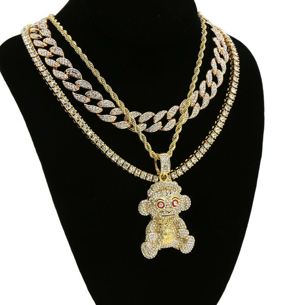 NbA Baby Monkey 4 Pcs Set Cuban, Tennis & Rope Chain Bundle Gold PT