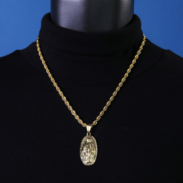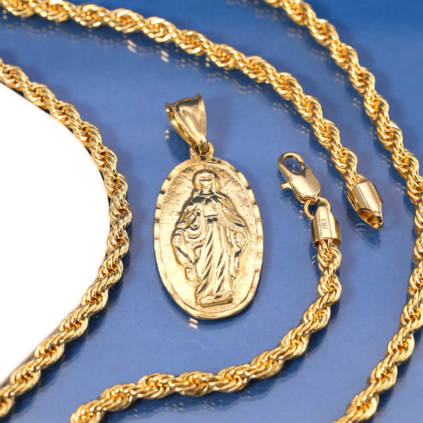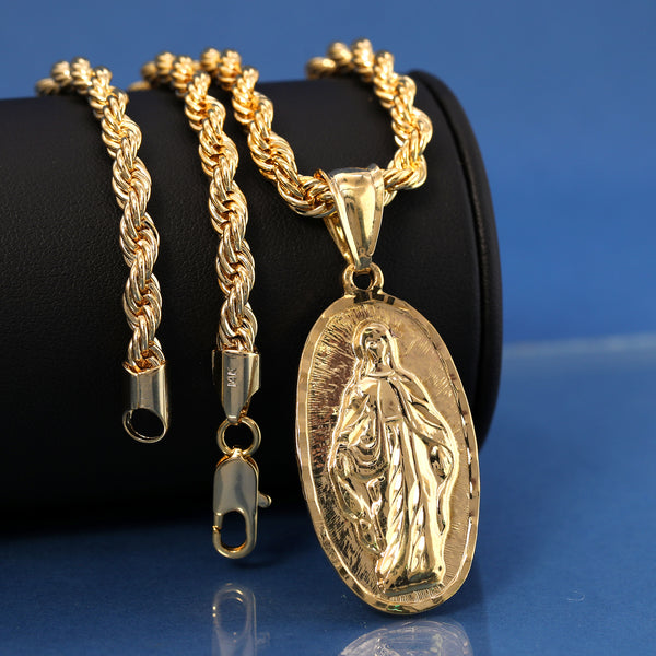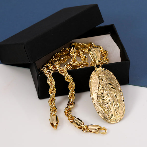 Our Lady Guadalupe Pendant Rope Chain 14k Gold Plated