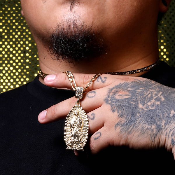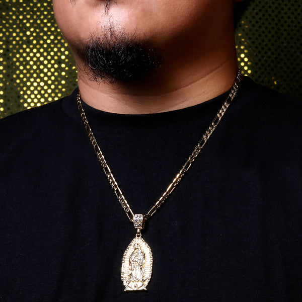 Oval Flat Bottom Plain Guadalupe Pendant Cubic Zirconia Figaro 24" Gold Plated