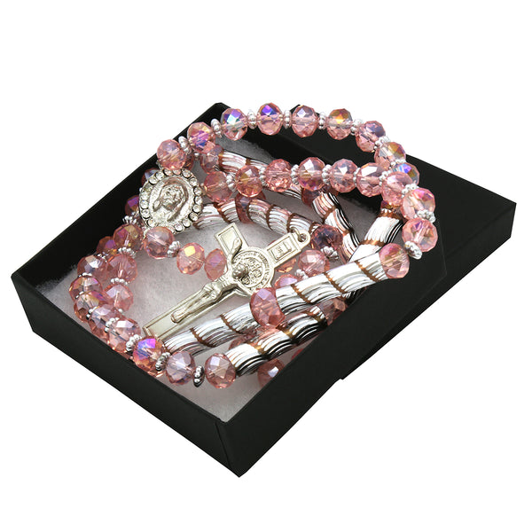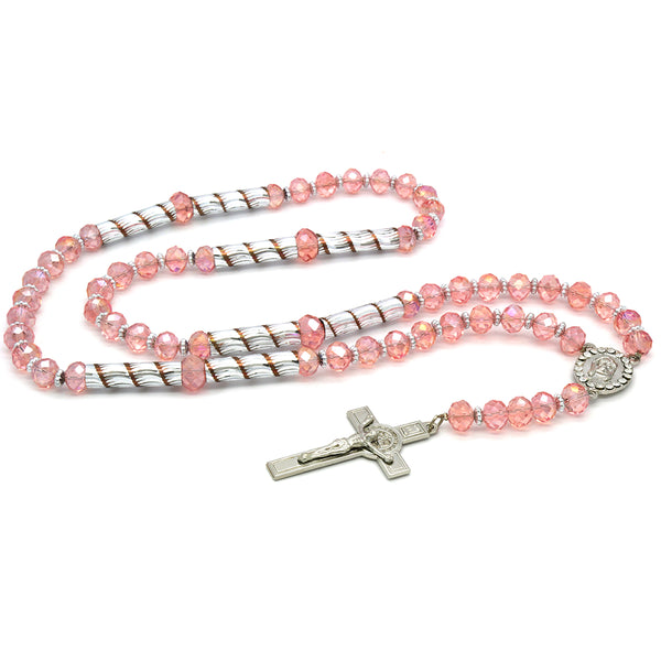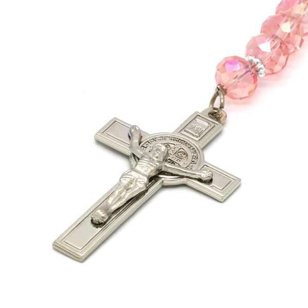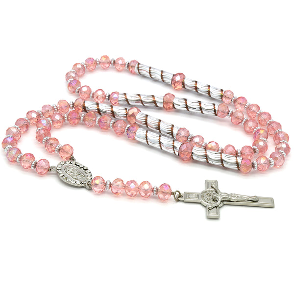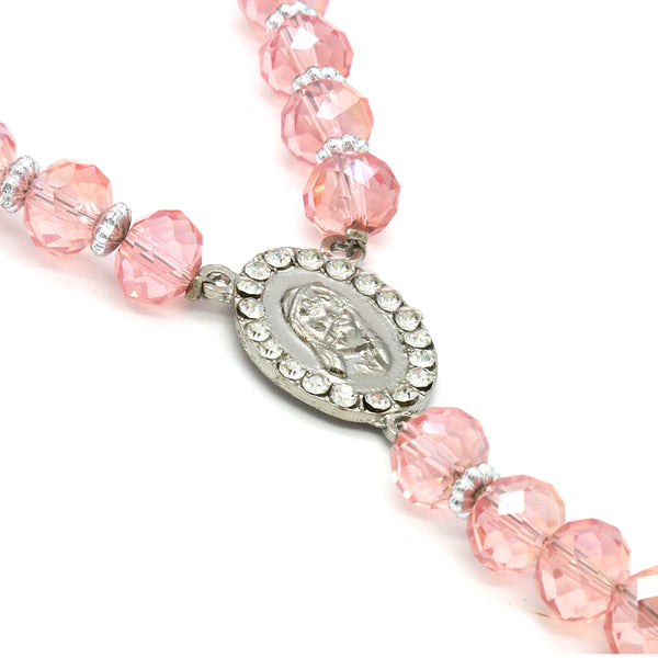 Pink Crystal Rosary With Cross Pendant