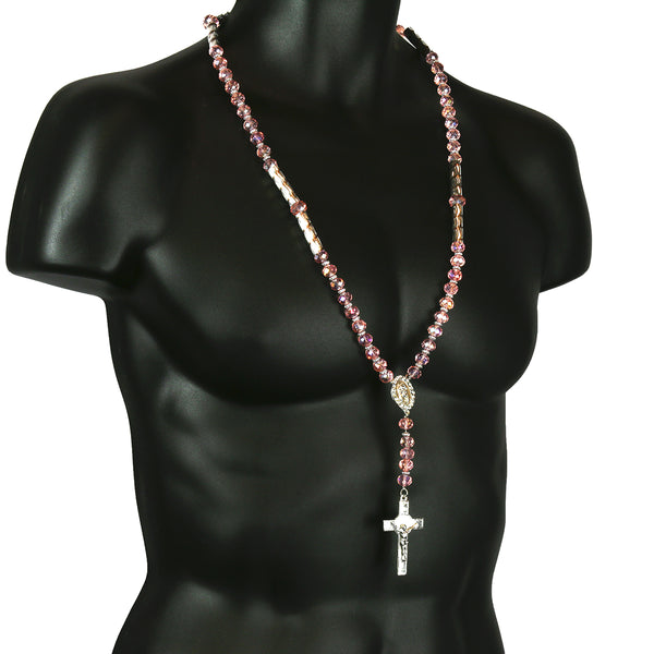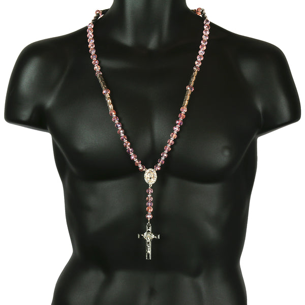 Pink Crystal Beads Rosary With Jesus Middle & Cross Pendants Fashion Religious Jewelry Necklace that fit for all, Men, Women, Boy or Girl Each Bead of the Necklace is Carefully checked...