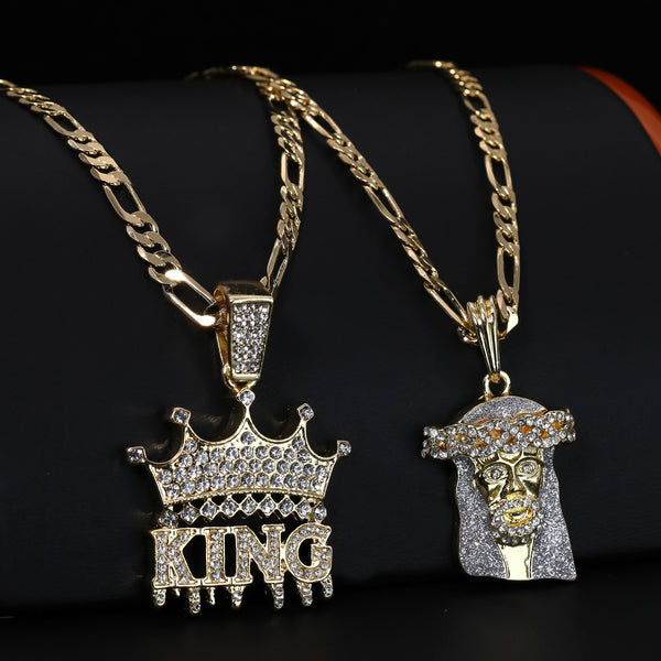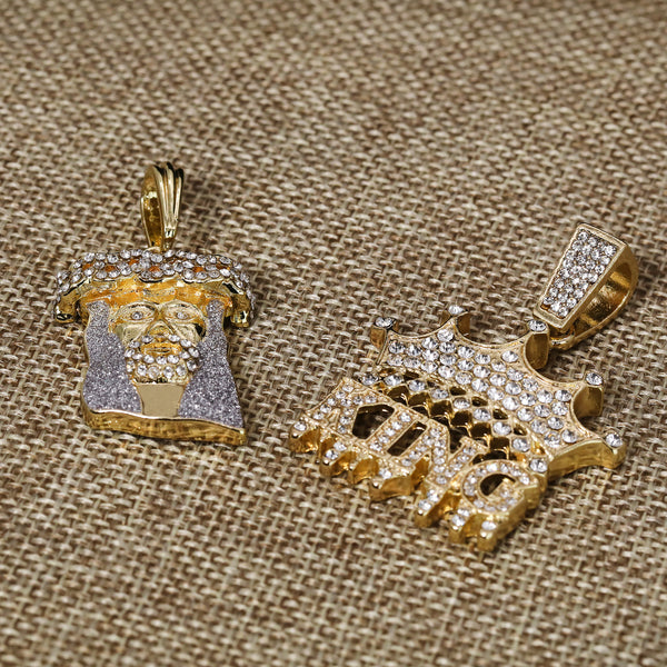 Jesus Stardust Face & King Drip Pendant 20, 24" Cubic-Zirconia Gold Plated