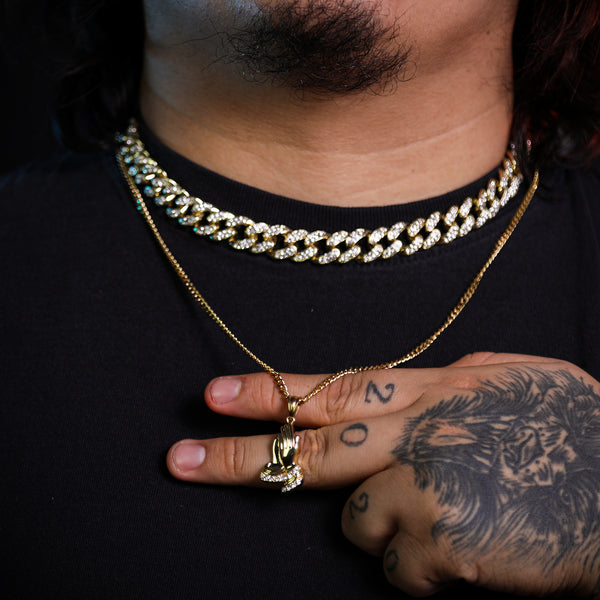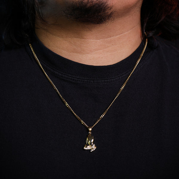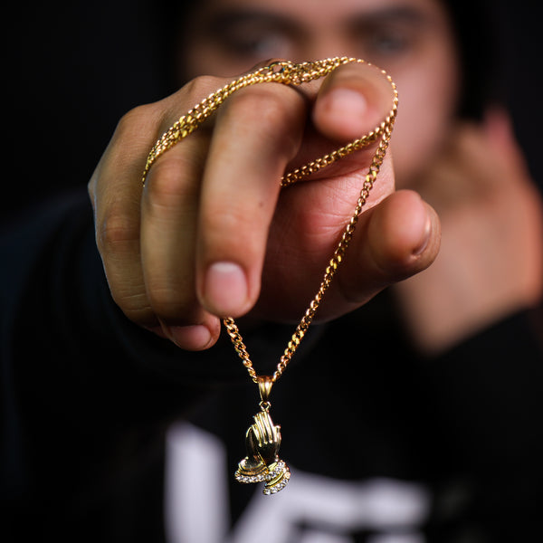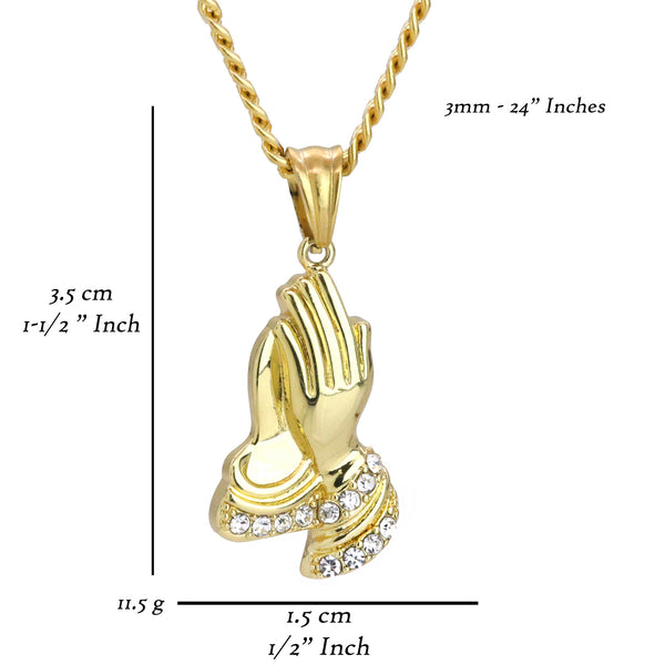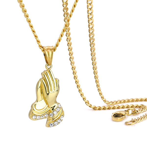 Praying Hands Pendant 24" Cuban Chain Hip Hop Style 18k Gold Stainless Steel