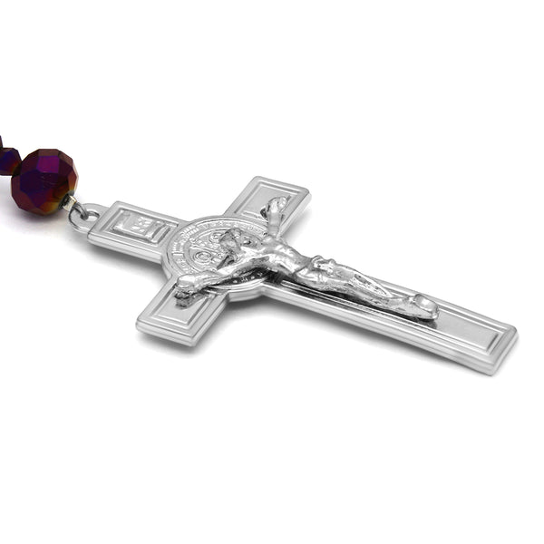 Purple Crystal Line Rosary With Cross Pendant
