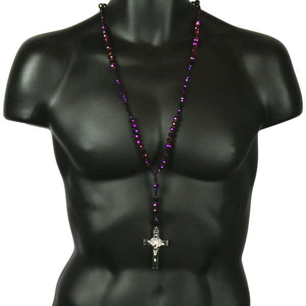 Purple Crystal Beads Rosary With Jesus Middle & Cross Pendants Fashion Religious Jewelry Necklace that fit for all, Men, Women, Boy or Girl Each Bead of the Necklace is Carefully checked...