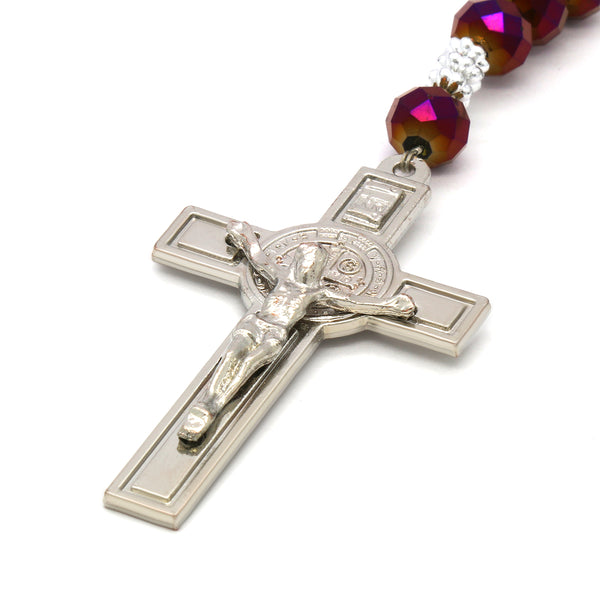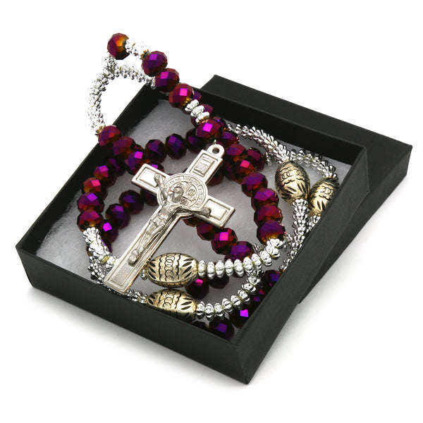 Purple Crystal Beads Rosary With Jesus Middle & Cross Pendants Fashion Religious Jewelry Necklace that fit for all, Men, Women, Boy or Girl Each Bead of the Necklace is Carefully checked Before...