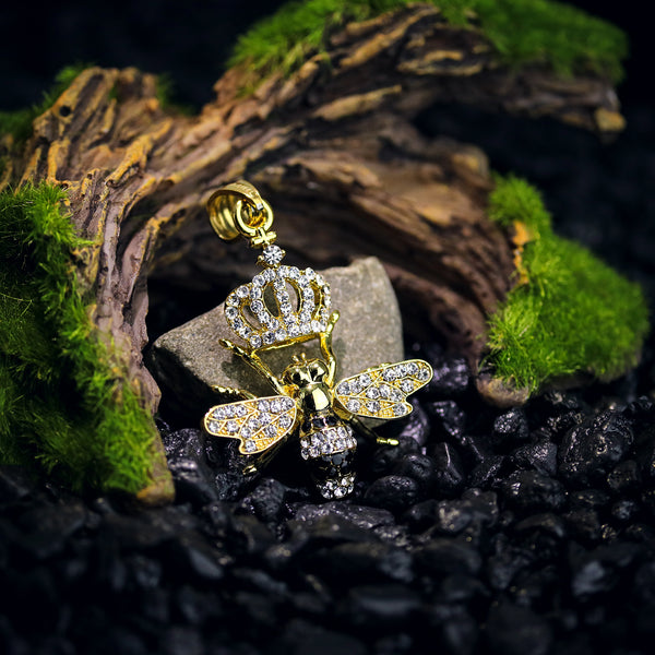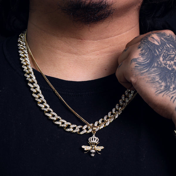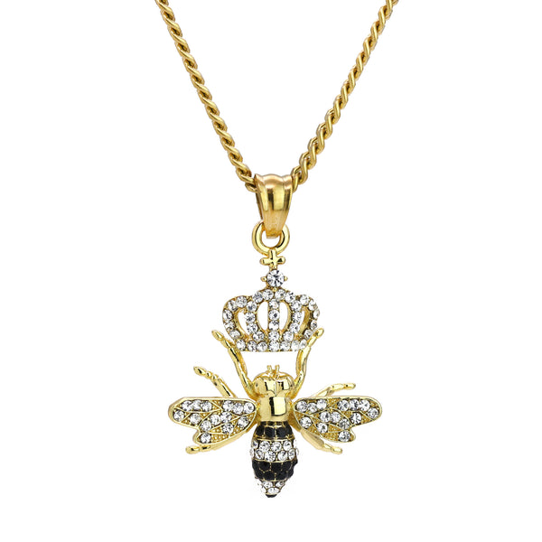Queen Bee Pendant 24" Cuban Chain Hip Hop Style 18k Gold Stainless Steel