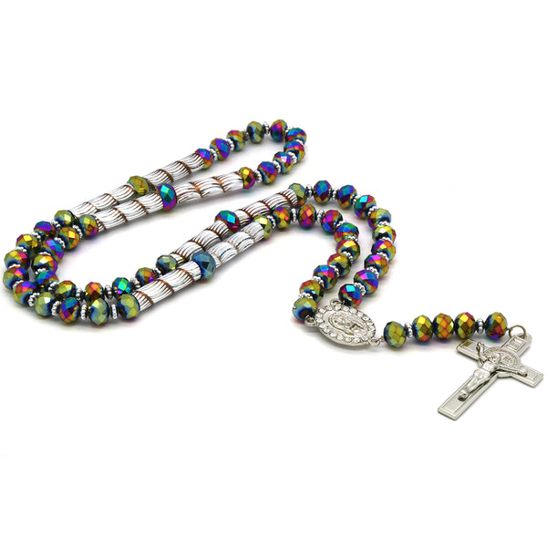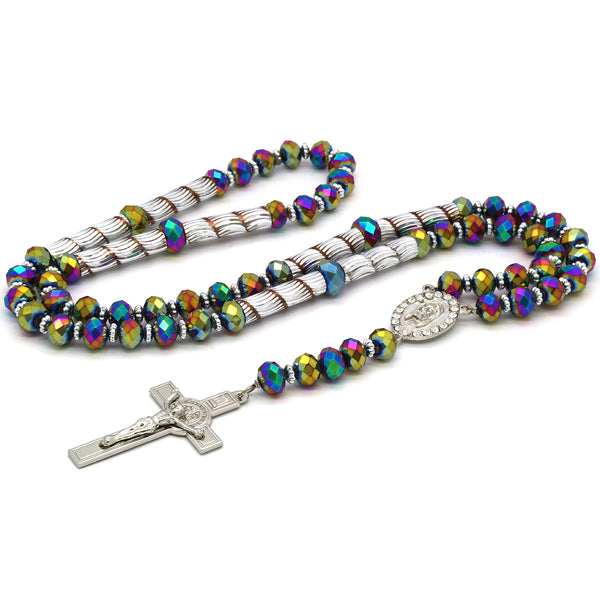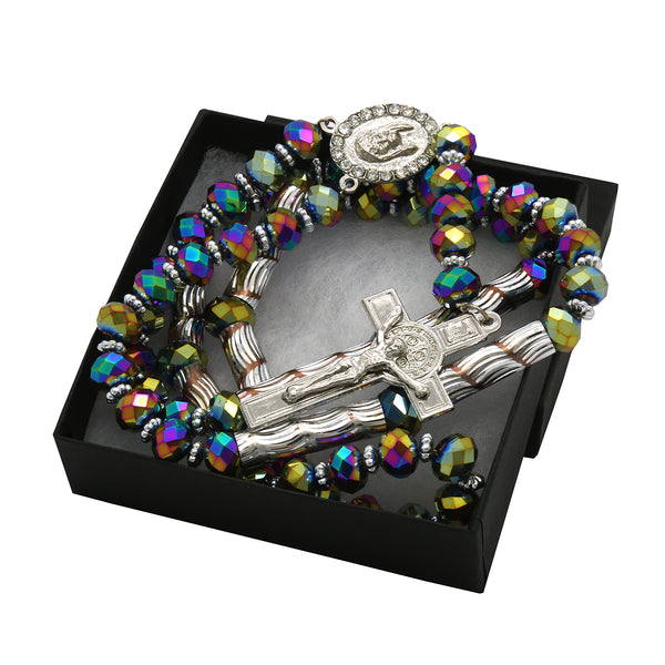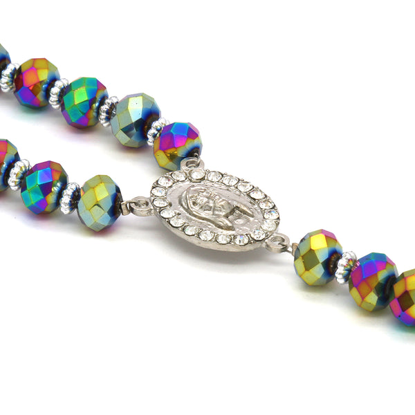 Rainbow Crystal Rosary With Cross Pendant