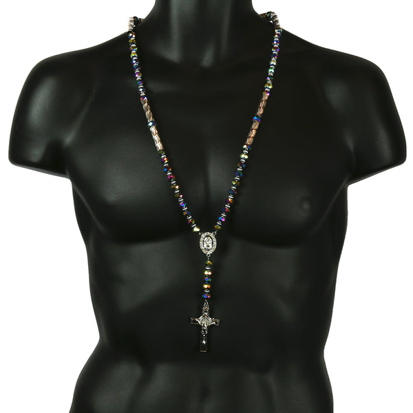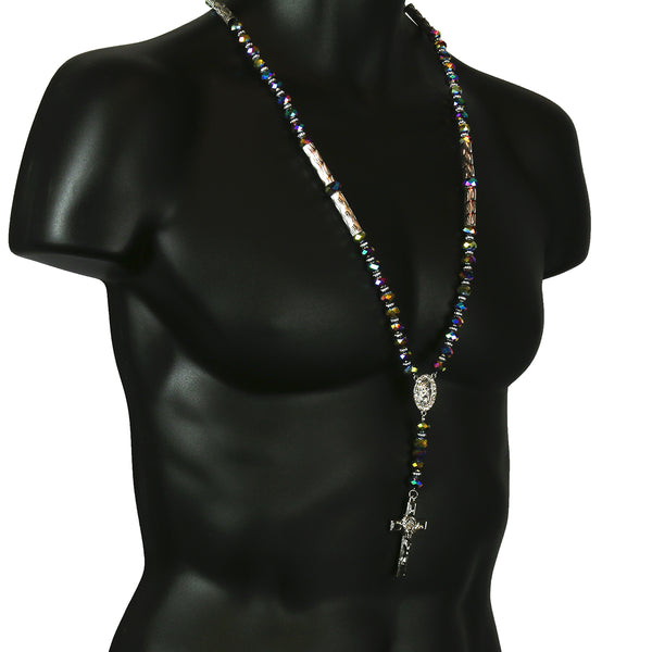 Rainbow Crystal Beads Rosary With Jesus Middle & Cross Pendants Fashion Religious Jewelry Necklace that fit for all, Men, Women, Boy or Girl Each Bead of the Necklace is Carefully checked Before...
