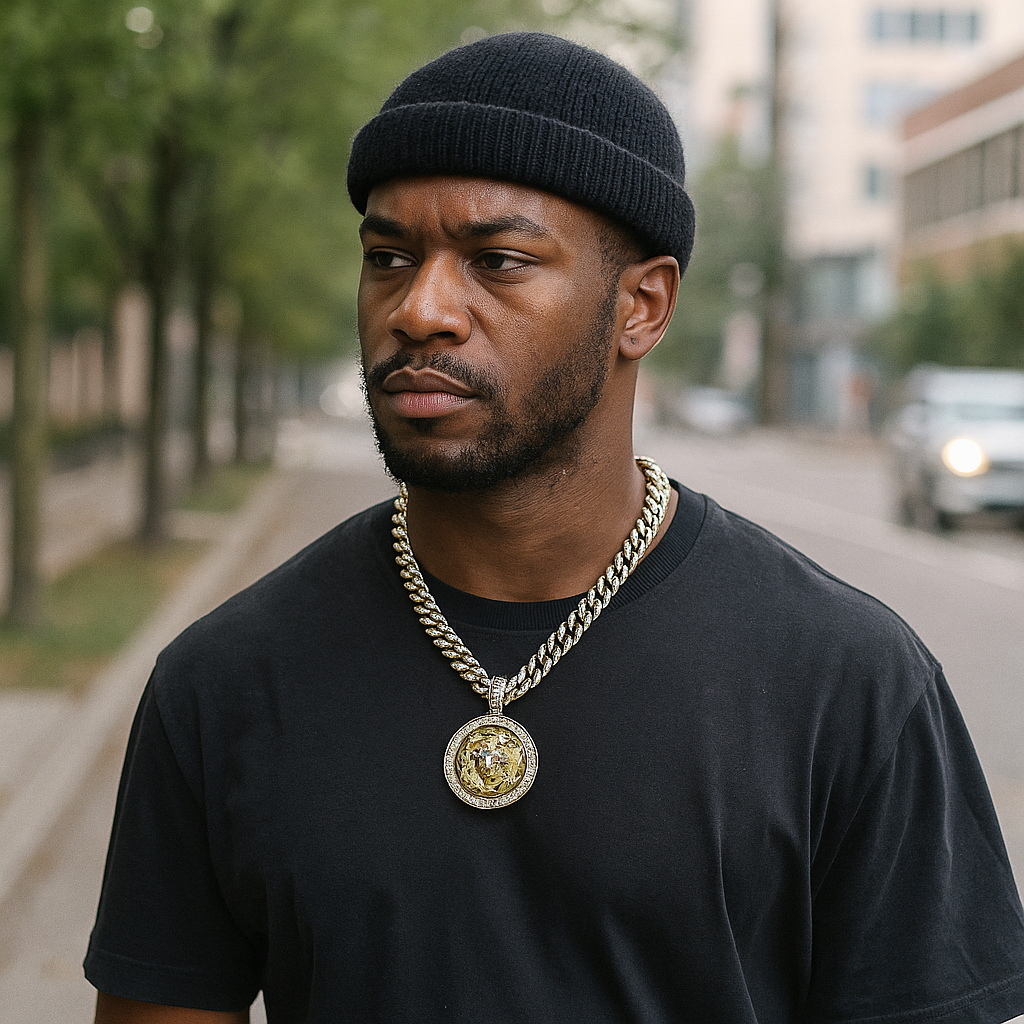 Whether you're stepping out for the night or showing love to your favorite rap icons, this heavyweight (approx. 130g) chain-and-pendant set delivers undeniable drip.