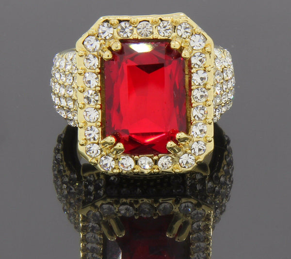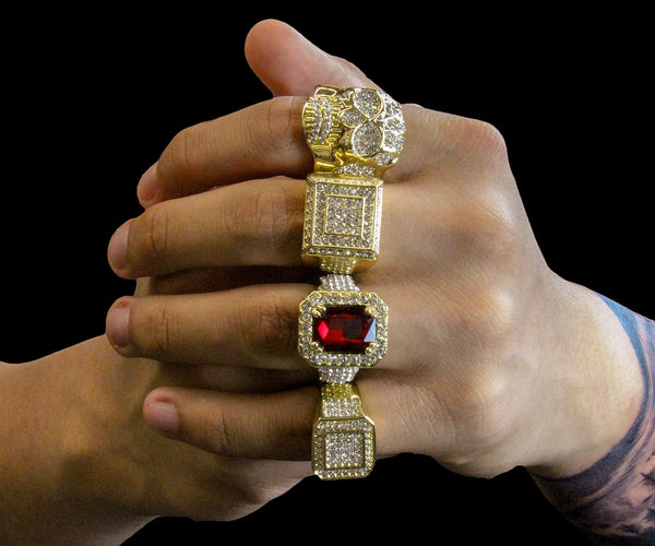 Red Ruby Iced Out 4pcs Ring Set Bundle