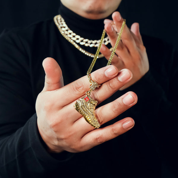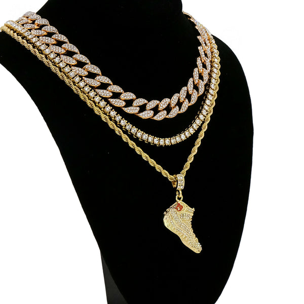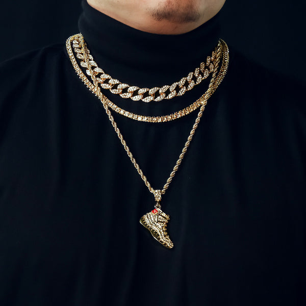 Retro 11 Shoe 4 Pcs Set Cuban, Tennis & Rope Chain Bundle Gold PT