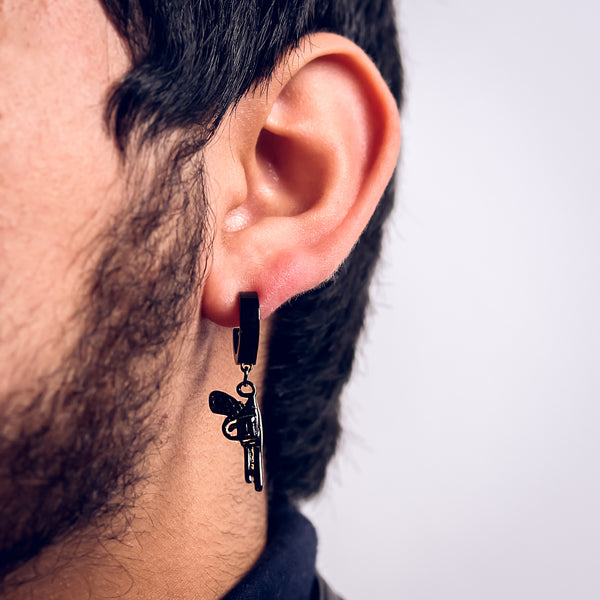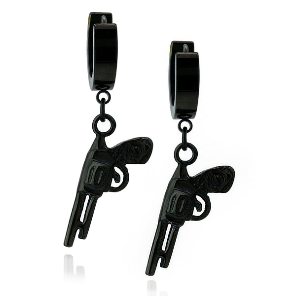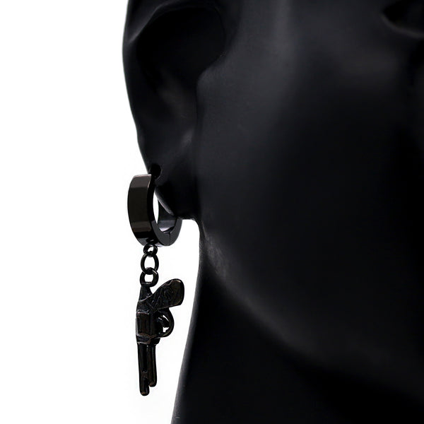 Revolver Hoop Earring Black Plated Stainless Steel