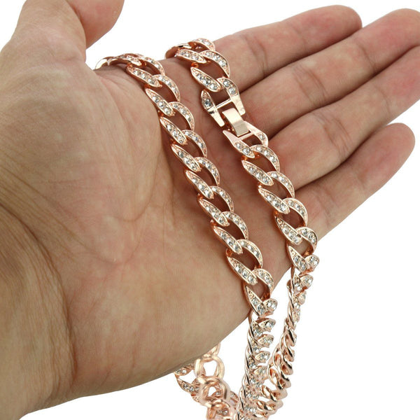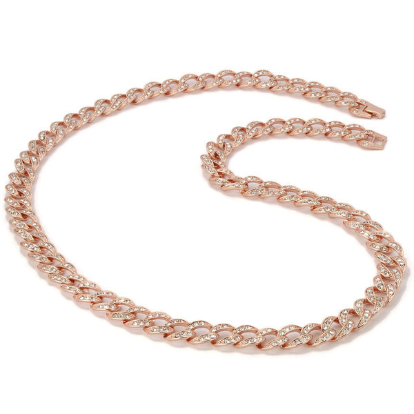 Elegant Cuban Rose Gold Plated Iced Out Necklace.  High-impact Rose Gold Plating over Brass. Lustrous Cz Finish in front of every link. Carefully interlocked links that create a beautiful drape Strong...