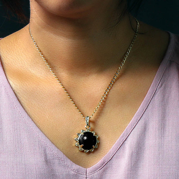 Black Round Women's Jade Chain Pendant Necklace