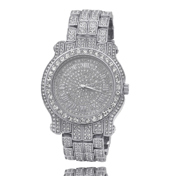 Silver Fully Ice Out Techno Pave Roman Numbers Watch