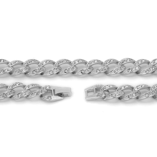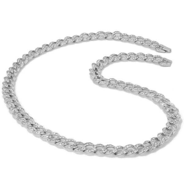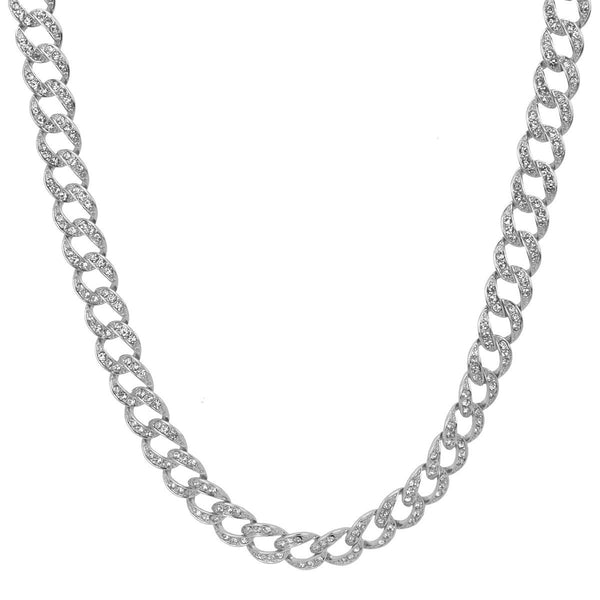 Elegant Cuban Silver Plated Iced Out Necklace.  High-impact Silver Plating over Brass. Lustrous Cz Finish in front of every link. Carefully interlocked links that create a beautiful drape Strong Snap Lock ensures that...