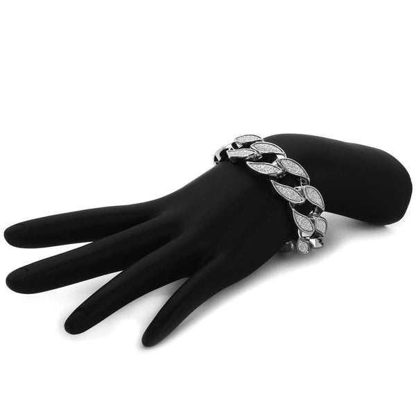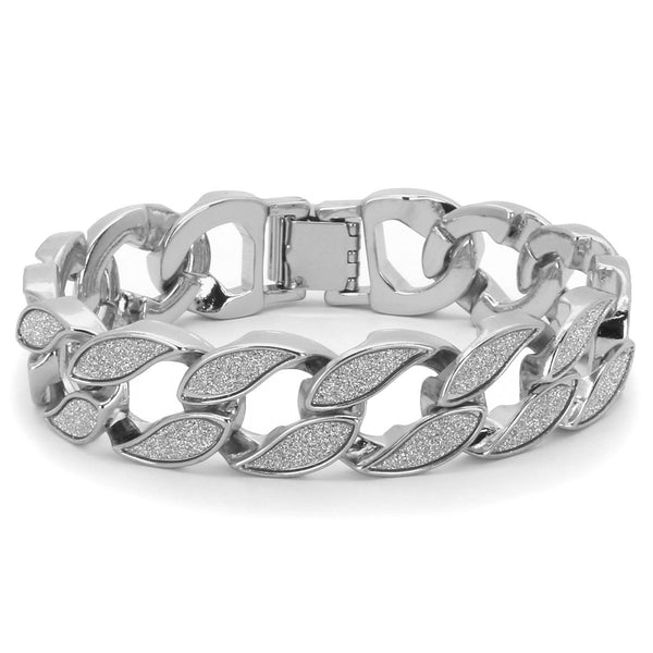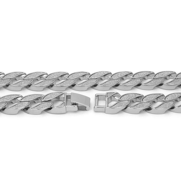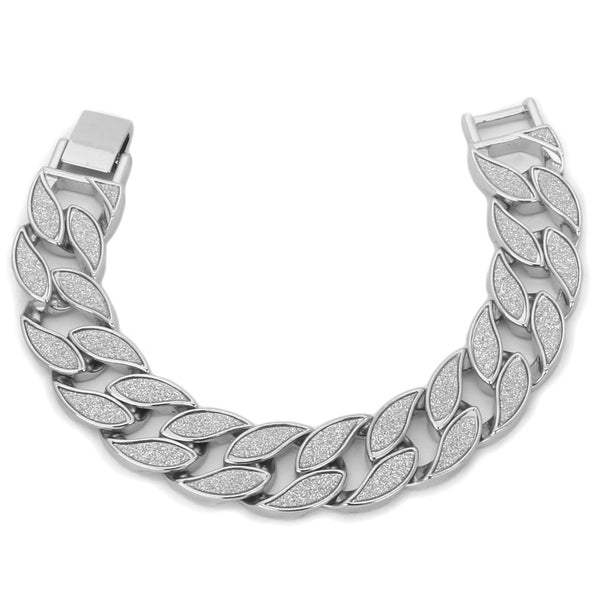 Elegant Cuban Silver Plated Sandblast Bracelet.  High-impact Silver Plating over Brass. Lustrous Stardust Finish in front of all links. Carefully interlocked links that create a beautiful drape Strong Snap Lock ensures...